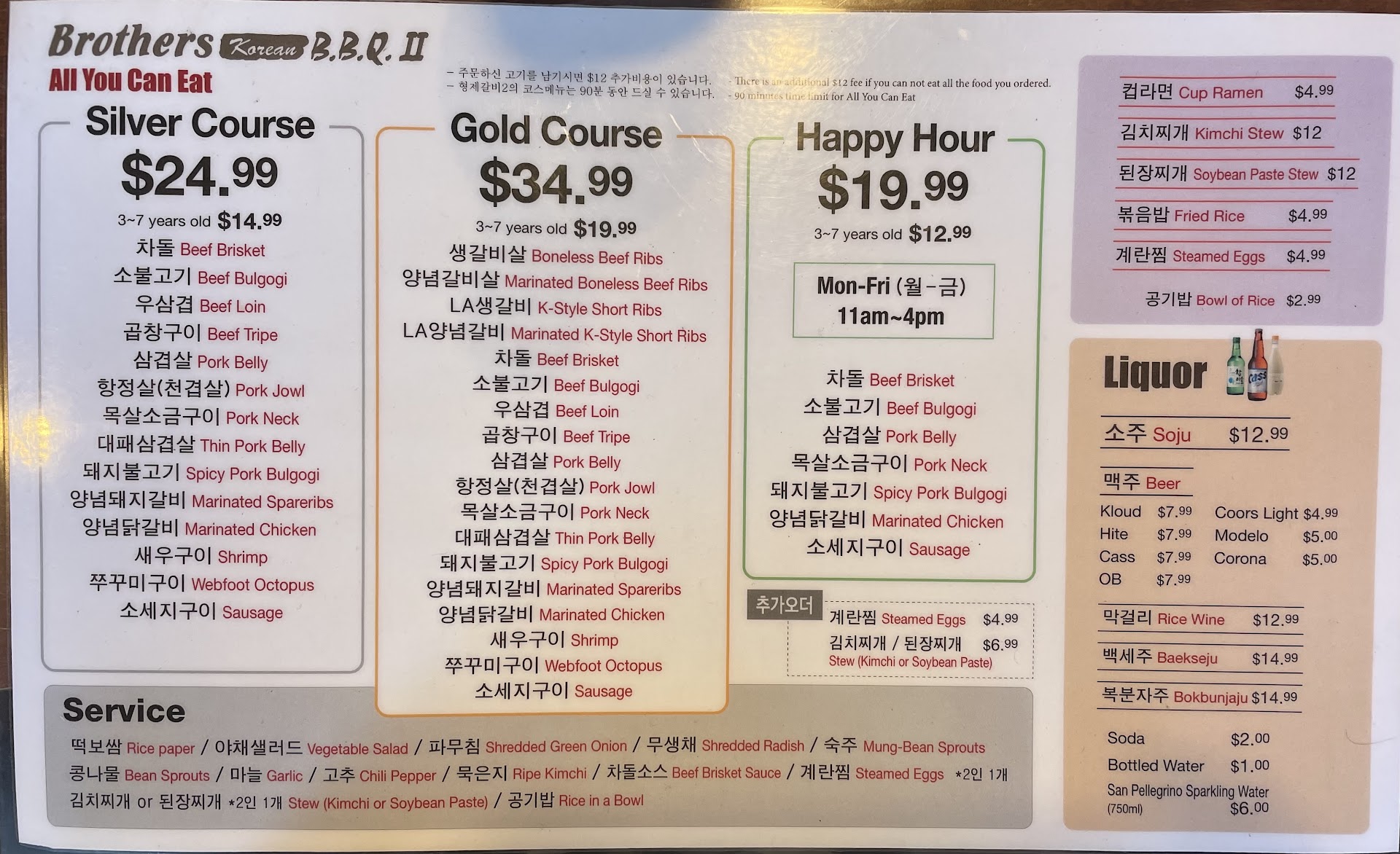 They should also fix their menu because it says min 2 orders but you can’t choose different meats to grill it has to be the same one. So why not just make it one order at the price of two. It was very very strange