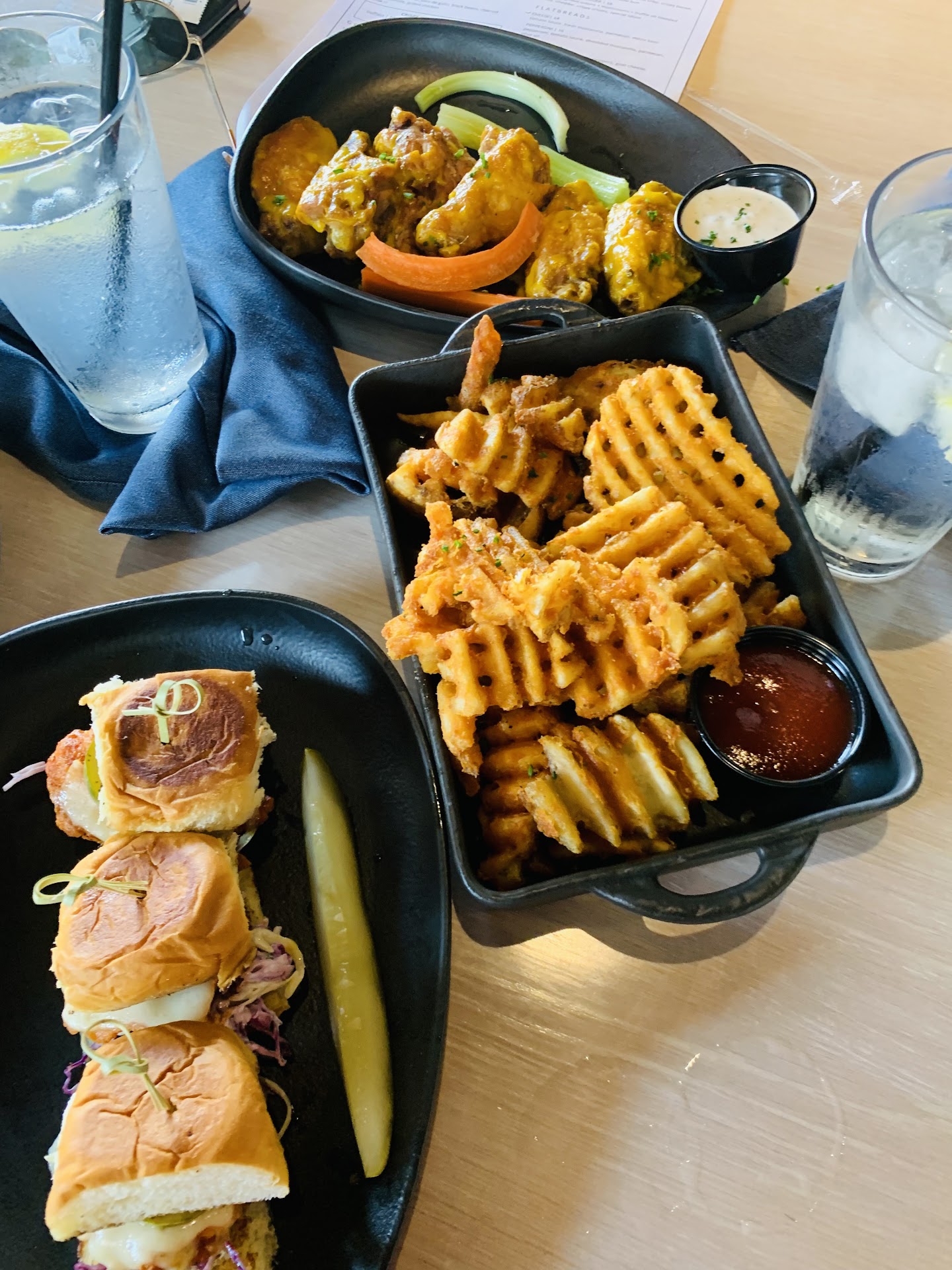 When we finally did get service 15 minutes later we were able to place our food order. I ordered the waffle fries, Buffalo sliders and mango habanero wings and my bf ordered the Philly cheesesteaks sliders. My food came out pretty fast but another slip up unfortunately.. they didn't bring out the Philly sliders. We had to reorder and eventually all of our food came out. Overall the food was pretty good, so no complaints there. It was more so the lack of service at this restaurant.