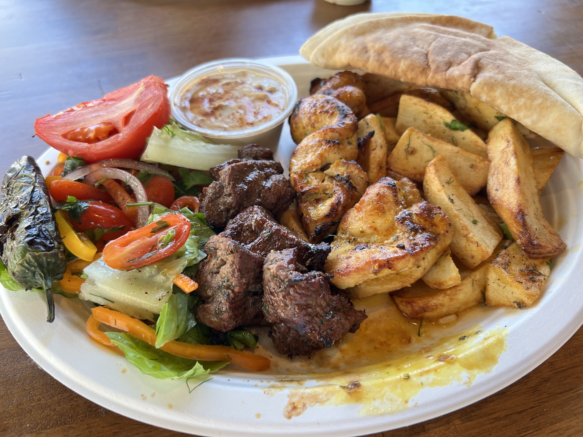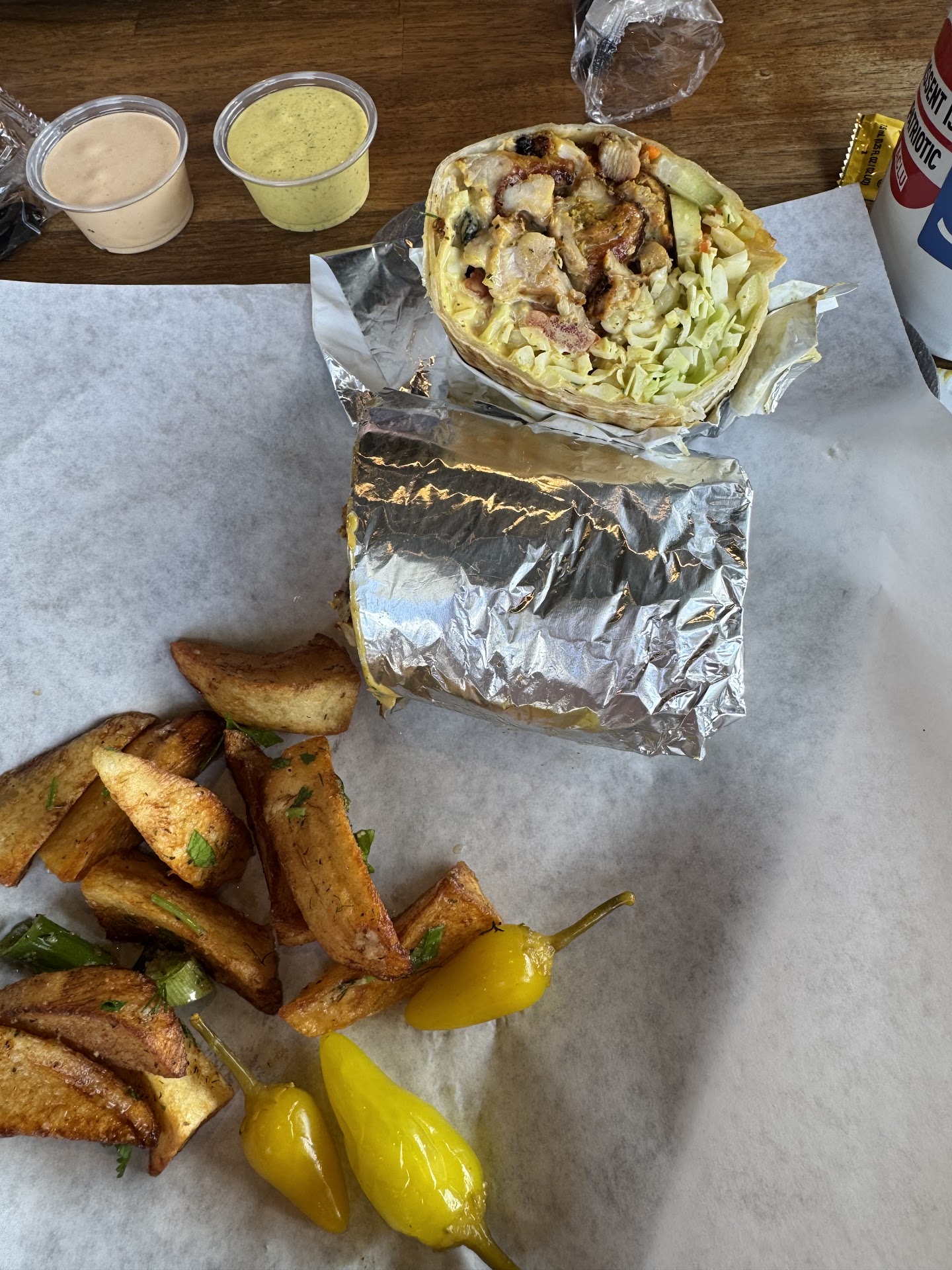 Since I tried the combo no. 12 “beef & chicken” I’m an absolute fan of this restaurant. The guys who are cooking and serving are extremely friendly, they love and are proud of what they serve. They work fast and present the food so that it looks inviting. The pieces of chicken are juicy, not overcooked & not undercooked - just perfect. Also the salad & hand cut French fries were absolutely flavorful, prepared with different herbs. Almost too good to be called side dishes. The soup of the day was a chicken soup, very flavorful and rich with chicken meat, small pieces of potatoes and different herbs. For me it had a kind of chicken tortilla soup taste, but my husband feel it is more like a mixture of a Jewish deli chicken soup & Mexican tortilla soup. We both loved it! All of the portions are generous. There is parking in front of the restaurant.