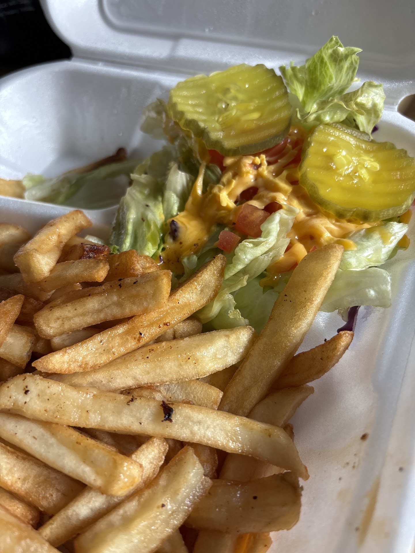 Read moreFries taste like popeyes fries, burger tastes like toms jr meets a big mac. Been there 2 times, would recommend it, got a cheeseburger combo that came out to 10.90 (80?) after tax, so for 11 bucks I got a cheeseburger, fries and a drink. The fries by themselves were kind of subtle, plain, simple, a hint of seasoning that was there but kind of feint, but with the burger, it somehow brought out a flavor to it that was missing by themselves. Maybe the fries were underseasoned but they weren't bad, they were definitely fresh and hot. Not fries that had been sitting at room temperature or under a heating lamp for a while. The burger was a pretty standard burger, standard for the area, nothing outlandish. Patty, bun, tomato, pickles, lettuce, cheese, they also give you some sauce and some pepperoncinis which is nice. The area is kind of rough, although they keep the actual stand itself mostly clean, there are homeless people that hang out close by. There is a drive thru so there is that. All in all, not...