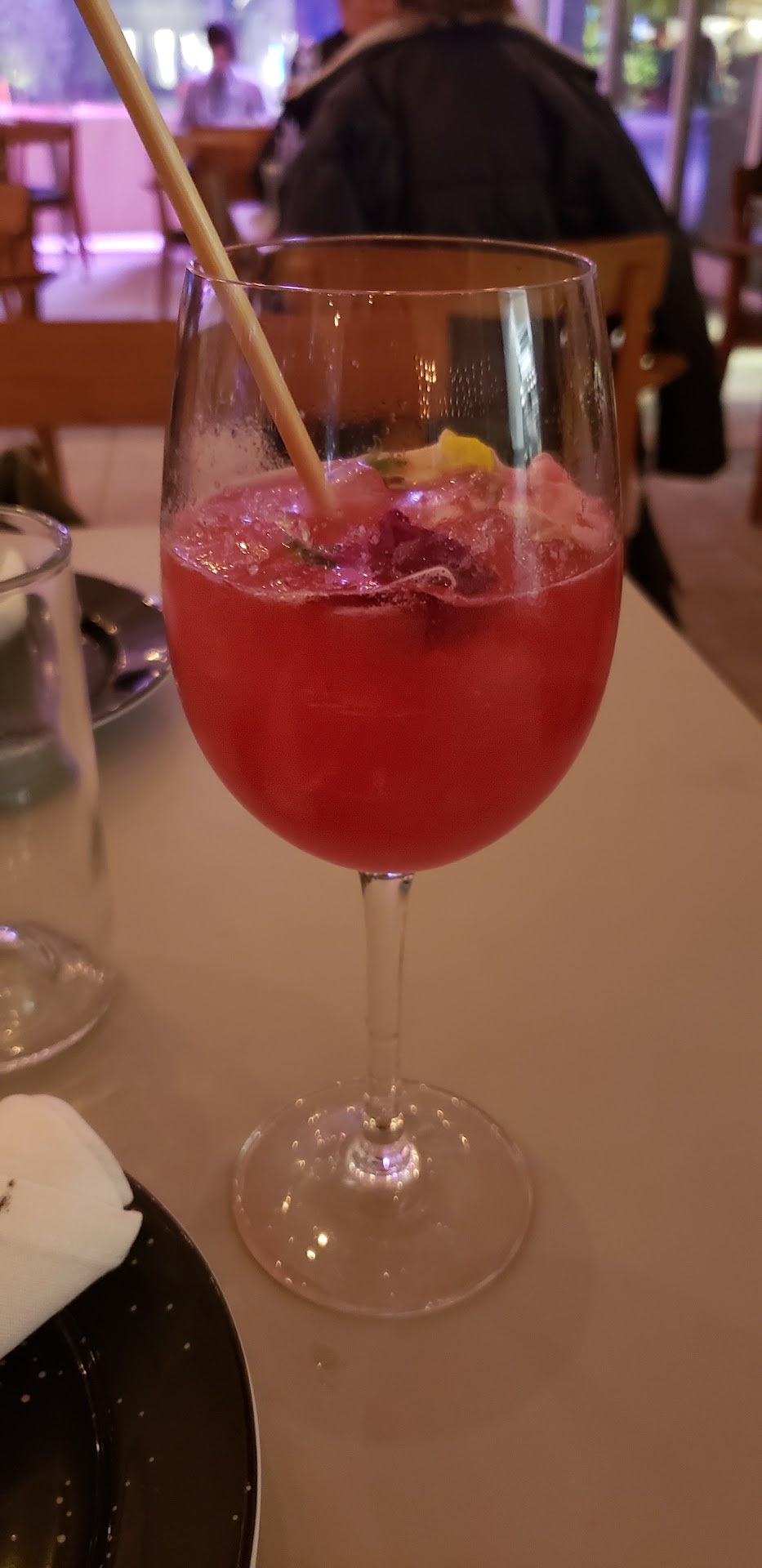 • Déjà vu mocktail was prickly pear shrub, ginger beer, lime, and bitters blend. It was heavier on the bitters end. I'm not sure I'd order this again.