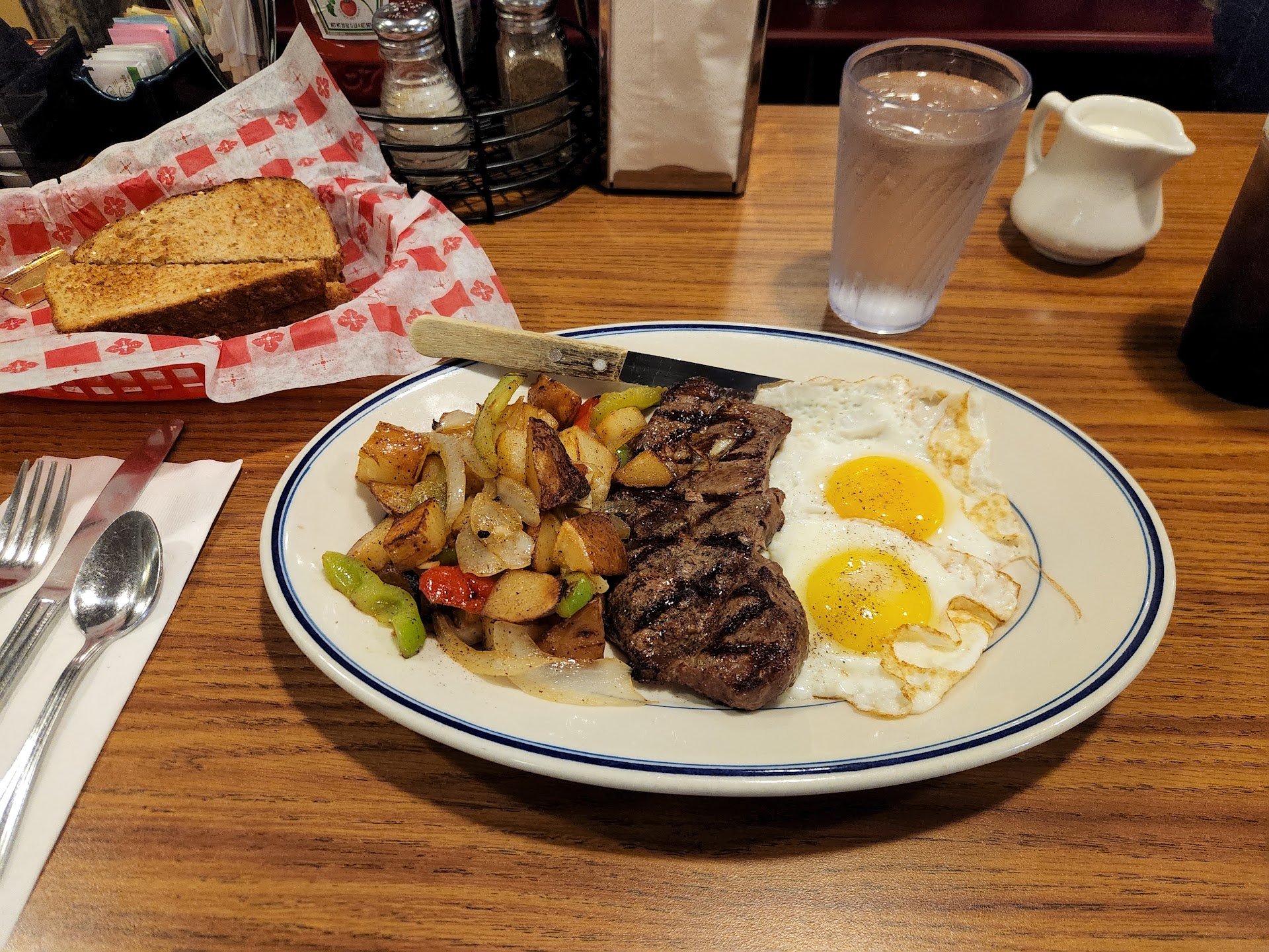 Ā Ā Ā Read moreDefinitely a sense of nostalgia here. Looks like the cafes of the old days, like even as far back as the 50s. The location is very interesting, nestled in a wooded hillside, as there is a museum, a gun shop, a gun range, and Police Academy next door. Food is good, prices are good,...