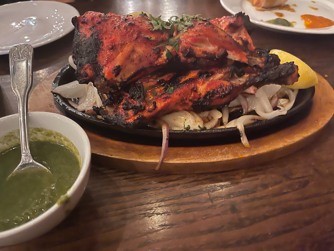 Excellent dining experience, will be back! Our waiter (owner/manager?) JC took total care of us, offering recommendations and colorful tips about the restaurant. Food was delicious (definitely get a tandoori!!) and even though it took awhile because it was prepared to order, I never felt like I was receiving anything but the best service and care. The chutneys are very good and homemade too! Oh and do NOT miss out on some yummy garlic cheese naan, it'll change your life.