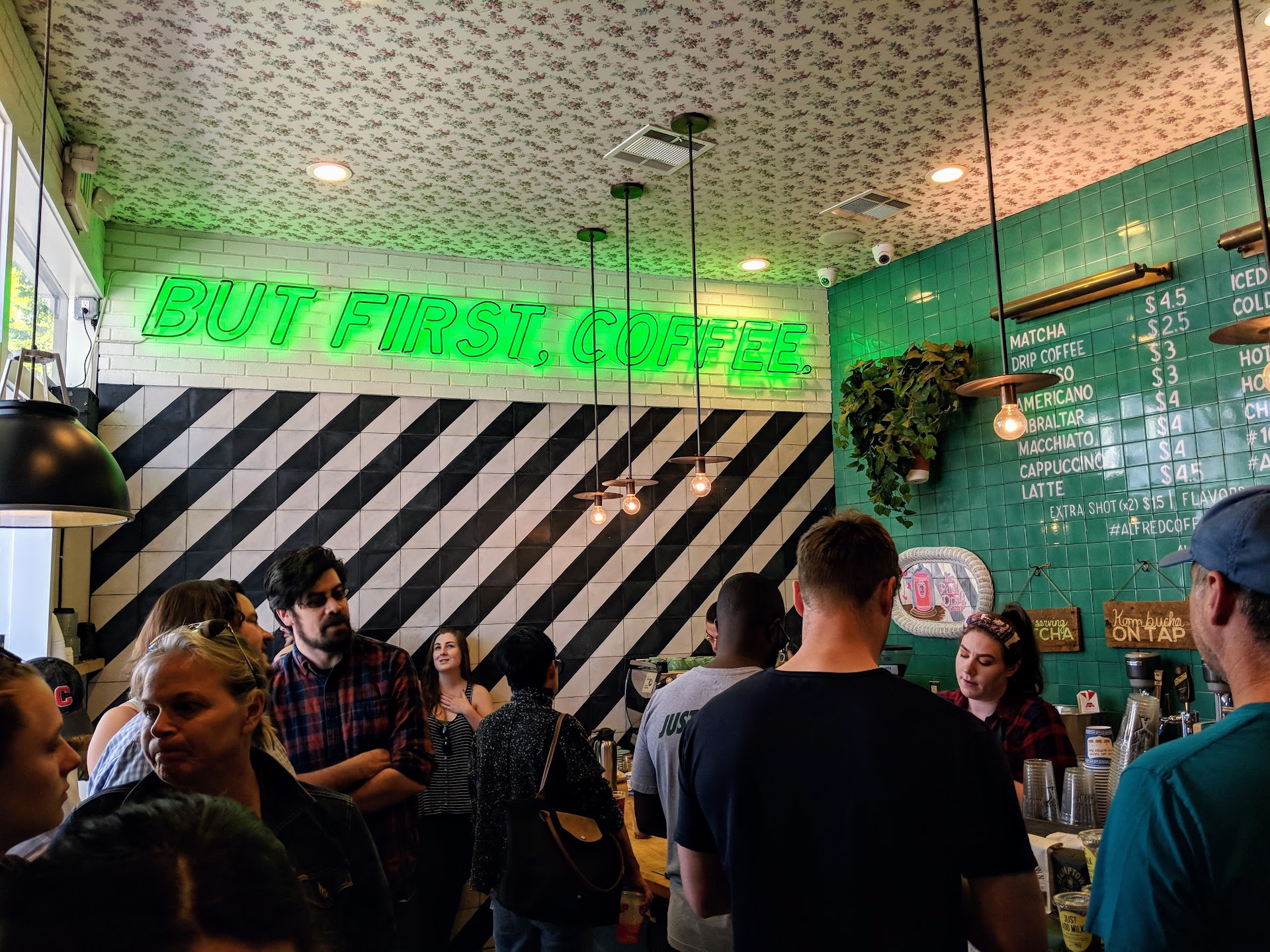 The saying “But first, coffee” is taken seriously when it comes to small local franchise Alfred Coffee, and their Brentwood location certainly doesn’t lack in trying to let their customers know that caffeinated goodness is available once they step into their colorfully kooky designed shop. Known for their #10DollarLatte (pretty much a Starbucks sized cup with your choice of significantly better ingredients), they also offer classic coffee and tea options (including a chicory, cacao, dandelion, chamomile blend called “Fake Coffee”) and cold brew, kombucha and matcha available on tap in order to please the many different types of Angelinos and visitors that come through. Fun little fact apart from them having great coffee, Alfred frequently likes to collaborate with other businesses, including famed specialty chocolate company Compartés (in which a shop is within walking distance to Alfred) and hilariously satirical social media account Overheard LA (which included themed coffee sleeves). So, what are you waiting for! Let yourself relish in quirkiness that is...