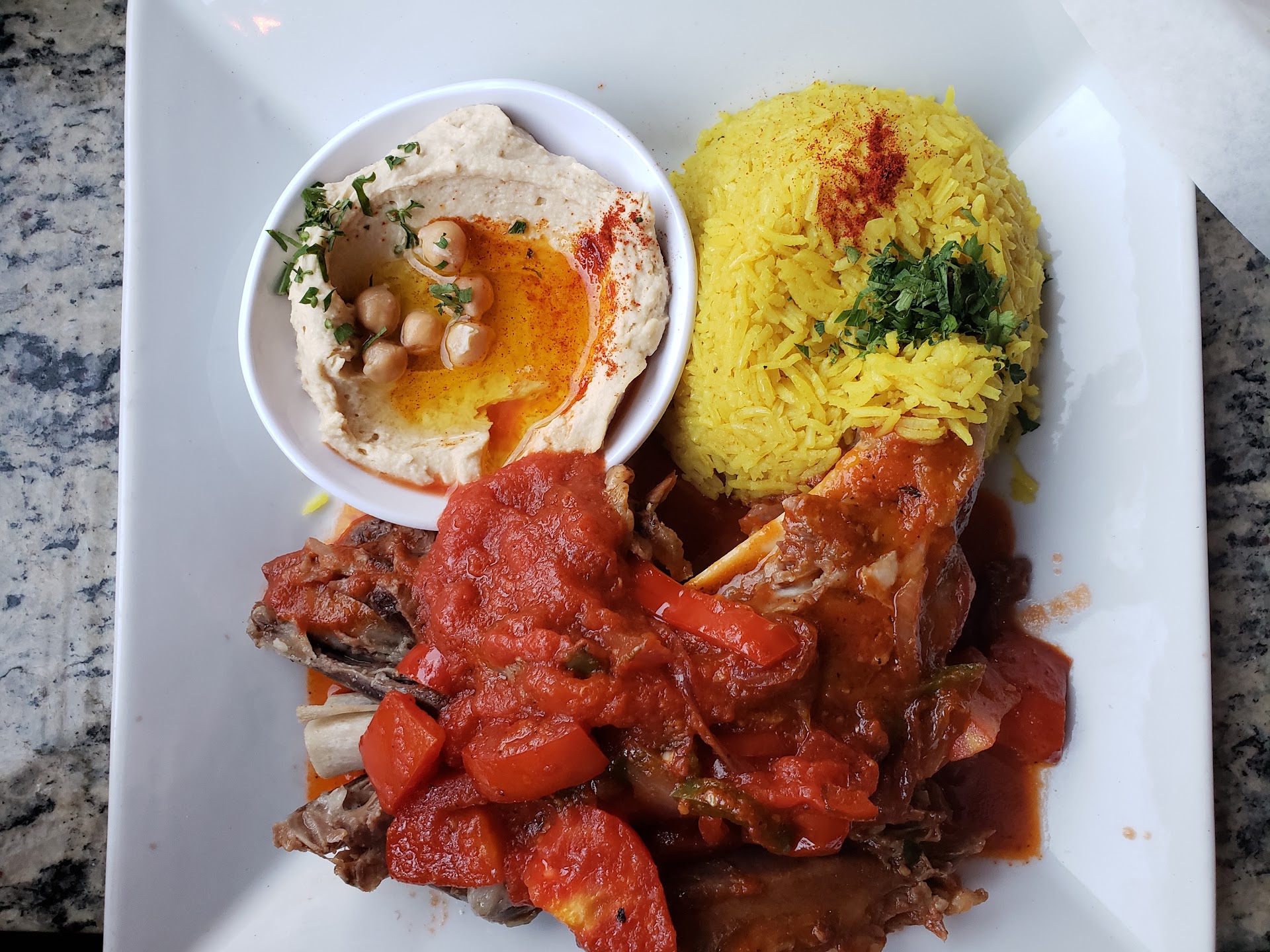 Then somebody who was seated before us got their food first which I thought was very strange. Then the food came and some of the shawarma was quite delicious. But we ordered the 3 lamb chops also. And the first one was a good, medium. And I suddenly realize that he never asked how we wanted it cooked. I would have said medium rare or rare but medium was okay. However, The other two were brick charcoals. And I was going to return them, which always makes me nervous at a restaurant, and ask for two done at medium rare or rare. Because they were just Brown and burnt. But my wife started to eat them and seemed to enjoy them so I decided not to send it back because I was nervous about it anyway.