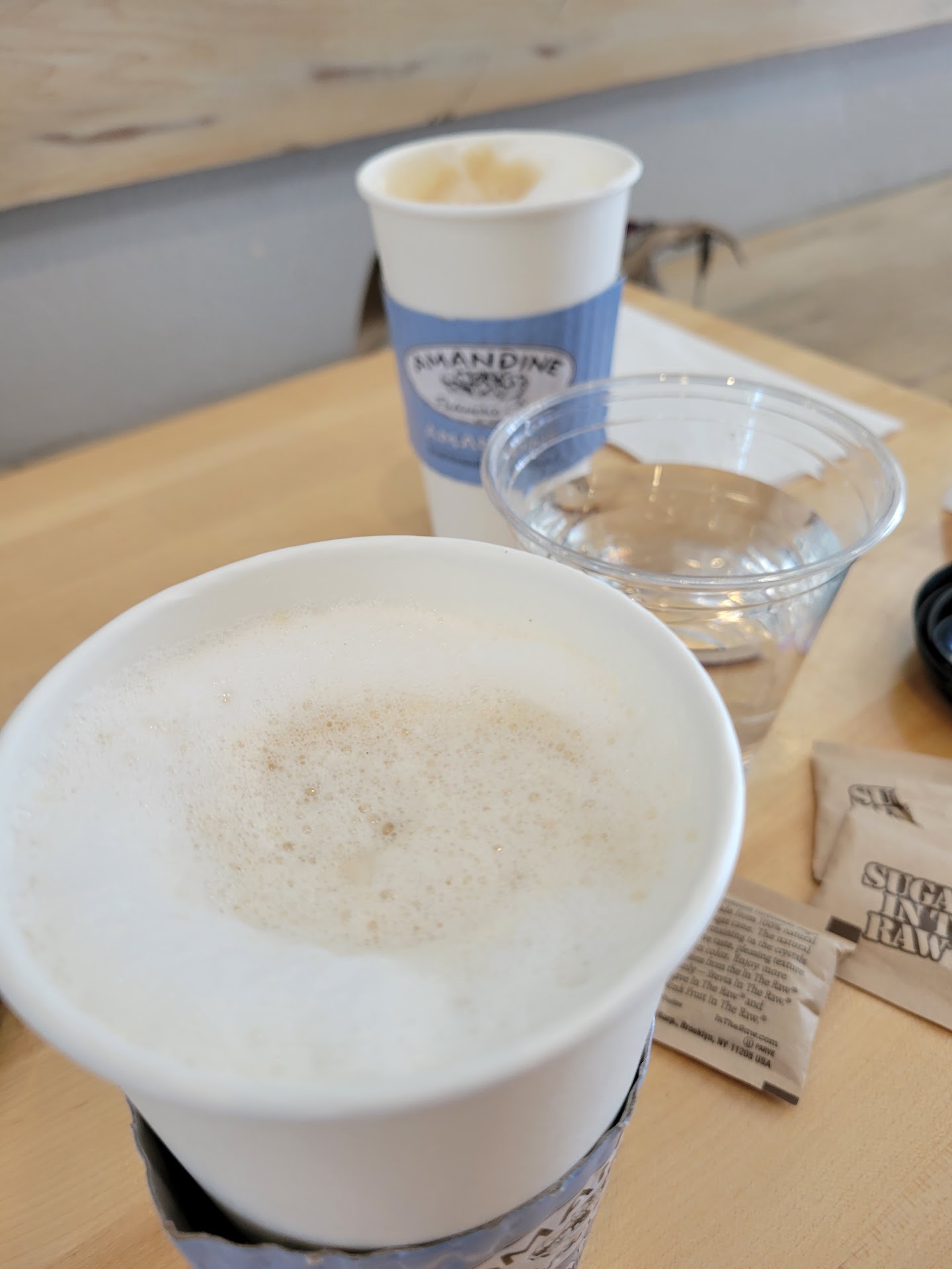 Read moreAmandine has the potential to be a great place to enjoy simple, pre-made pastries. Just stroll in for some coffee and a croissant. It's not bad at all. The place has a customer service challenge. I called Amandine today to enquire about their sheet cakes. I had forgotten that it is called Patisserie, but they don't really mean it. I have been a number of times and I always walk out with varying degrees of disappointment, whether it is people taking down my order over the phone and not having a clue about it when I come to pick it up, or simple questions about the pastries. A fellow answered the phone and was puzzled by my sheet cake question, so he passed the phone to a lady who also did not know what a sheet cake is, and then promptly hung up on me. Perhaps they thought I meant something else? I guess if my experiences with this shop were different I wouldn't be writing this review. Really, it's a cafe that sells some bakery foods. It's just the customer service is non-existent and that usually comes from the top... Also, if the establishment does not bake (or know of sheet cakes), then perhaps the bold "Patisserie" is...