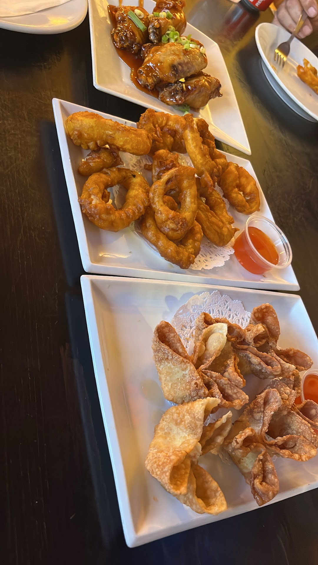 On my last visit I sat for dine-in. I ordered cream cheese wontons, dynamite wings, and fried calamari. The appetizers were good. The service was prompt. For entrees I ordered chicken and shrimp pineapple fried rice, a large tom yum with chicken, Mongolian beef, and spicy eggplant with chicken. The rice tasted too strongly of curry but if you love that then order this. There was lots of chicken but only 3 shrimp. The Mongolian beef was delicious! The spicy eggplant was great! Once again the Tom yum was a small portion compared to other restaurants. Overall, the food was okay, the service is good and the food...
