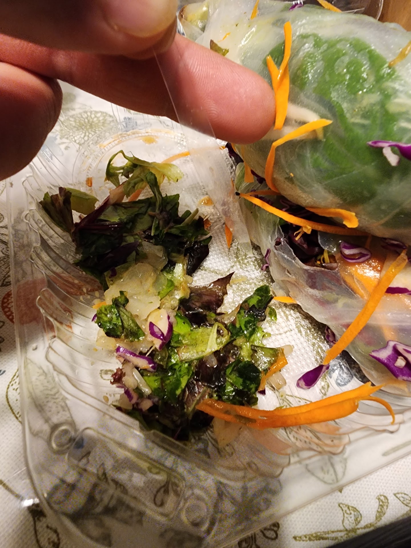 The staff is unfriendly, and a server at the front table didn’t even look up from counting his tips. It’s not that I’d expect him to stop what he was doing, but a “hello, welcome!” would suffice. A lady appeared from the back and handed me my order. Although she wore a smile, she was curt, kind of a “Here’s your bag. Bye!” No offer of utensils or an upsell, like asking if I would like to order Thai tea. The missed opportunity matched the missed mark that described the food.