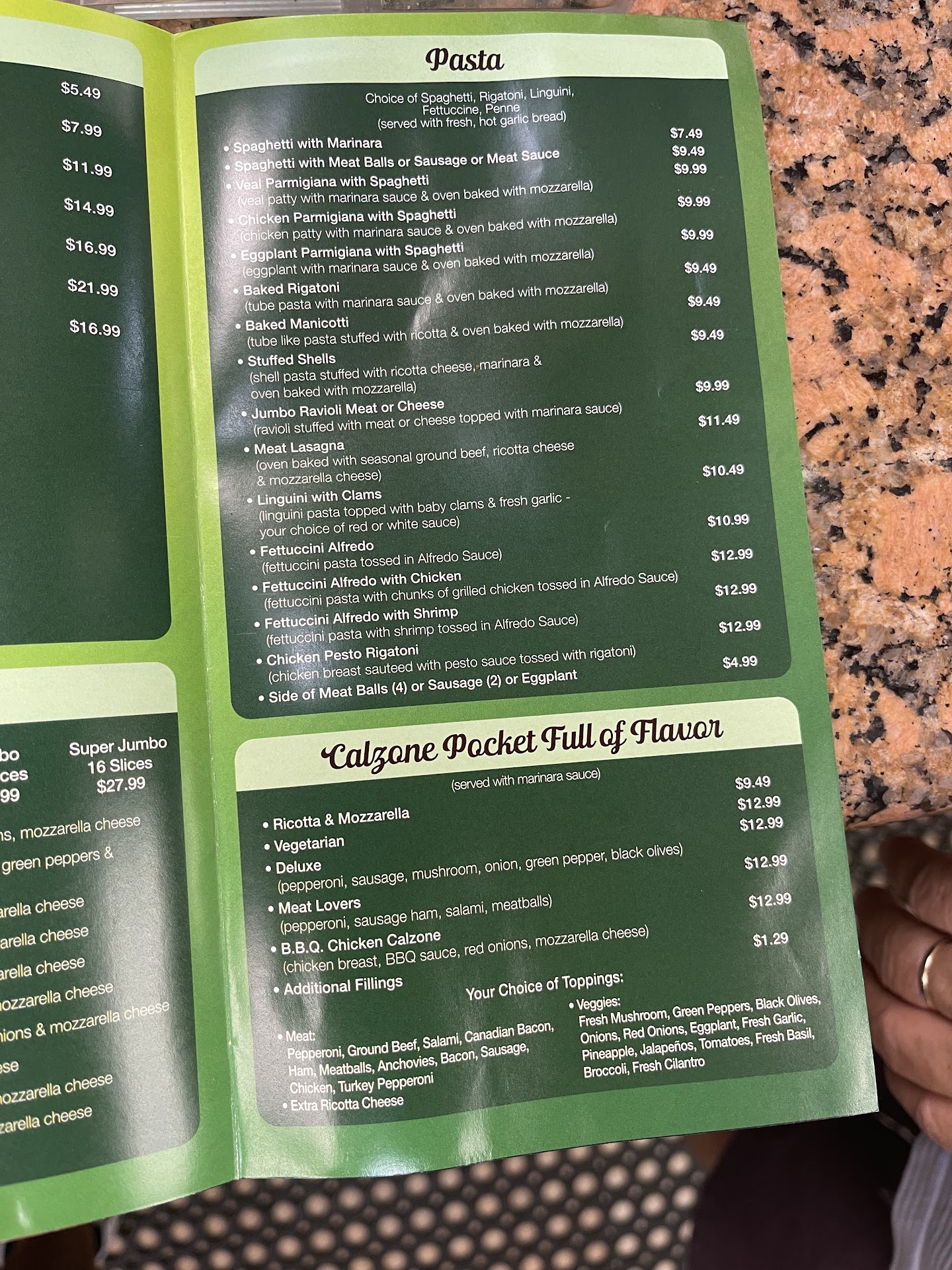 This place is my go to when I’m feeling pizza or similar. They have friendly service and pretty fast. This pizza joint is alway clean and I have yet to be able to sit down and eat there. It is in one of my bucket list I’m sure of it. Todays treat was a calzone meat lovers. Ian a creature of habit do I tend to stick to what I like and not wonder further from there. But I felt froggy and took a leap of faith. Good thing I did. The calzone was delicious as you can see by the pictures the one from the car ride was the only one I was able to take. The is similar to what they use for the pizzas, if not the same. Cheesy and well prepared. In the box came everything I needed to enjoy my delicious treat. A container filled with marinara sauce very flavorful and hot, it compliments the calzone and does not over power it. Some napkins cause I am a messy eater sometimes. A fork and knife was also included. The combination of different meats just made a great combination of flavors. The meats used was pepperoni, ham,salami, sausage, and meatball. Everything seemed to sliced thin like pepperoni style. A great combination of course when heated the juices all the meats release mix in with the cheese which I like. Ricotta cheese is what is used. Now I have tried similar which had mozzarella but my taste buds like ricotta better. Maybe at some point I will do a competition between calzone ricotta vs calzone mozzarella. Try them out or if you have not tried them out give them a chance you will not be disappointed. If possible walk-in and check out the place. They do deliver. I see the delivery guy going in and out all the time.