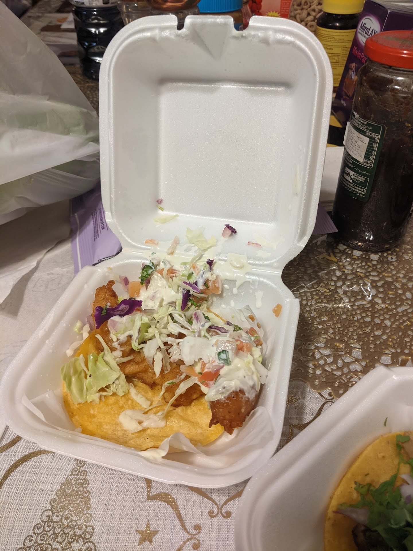 The shrimp and fish tacos were cold and slathered on with mayonnaise (pictures attached). The other tacos that I ordered were packaged all wrong and all I got was a hot mess. Take your money elsewhere. Needless to say, I will not be returning to this...