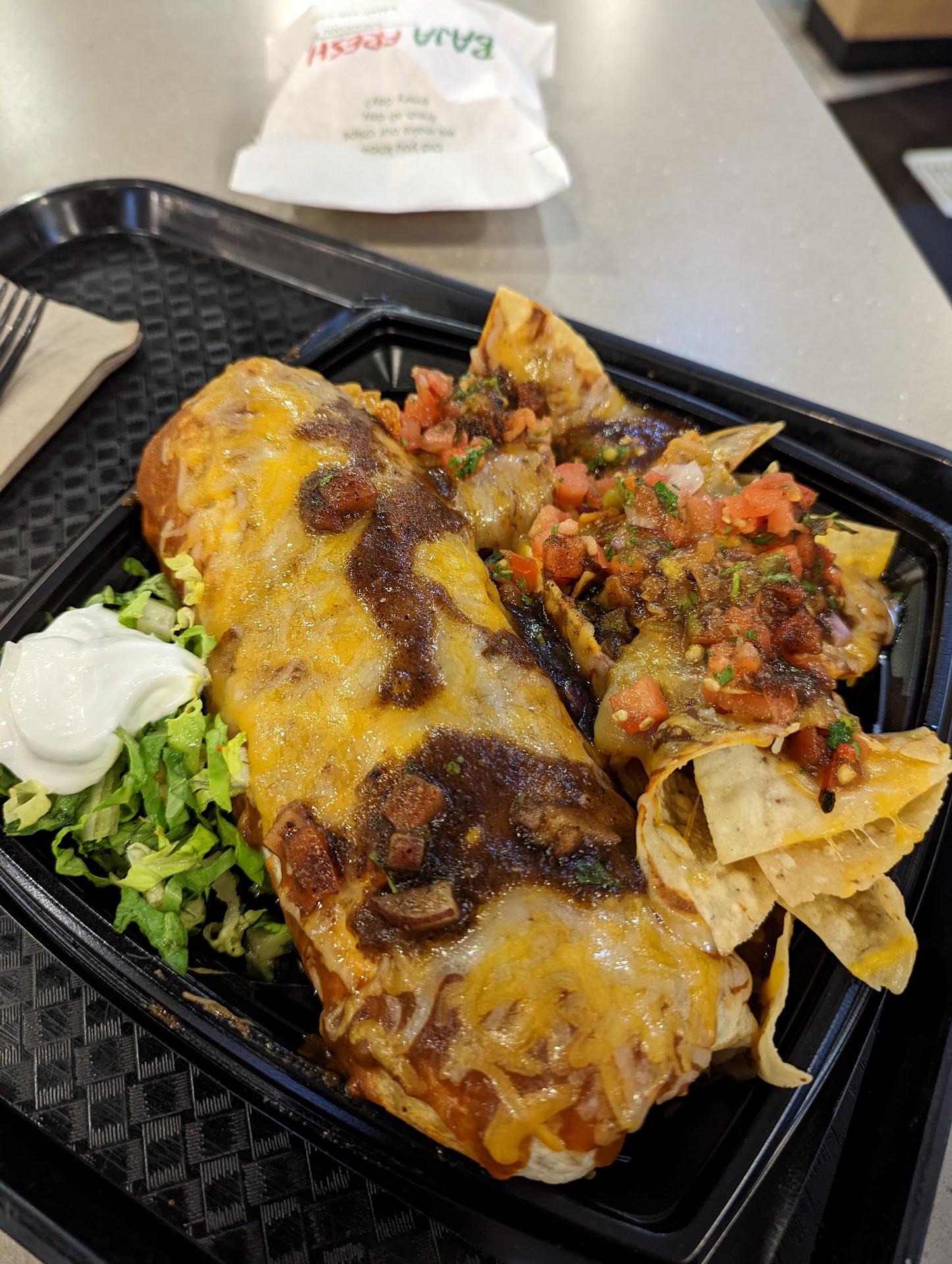 Read moreHuge burritos that are very filling, but the flavor is bland. Even the pico de gallo and guacamole are bland so the vegetables are not good quality. They overcook their fish and their tortilla chips have an odd aftertaste. I went for a buy one get one free deal and the cashier had an attitude about it and then pretended that she forgot to scan the coupon. My friend went a couple hours later with her coupon and called to ask me if the cashier was rude to me as well. We were left with a bad impression and a bad taste/no taste in our mouths. Work on customer service...