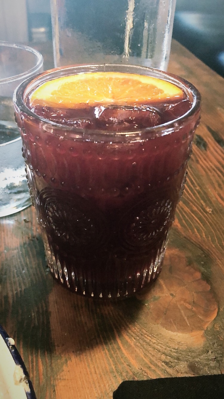 I ordered the Mom's Green Enchiladas, and one of the rum sangria's. The enchiladas were some of the favorite enchiladas that I have ever had. It came in a very aesthetic skillet with a small oven mitt attached to it, and had cream and cheese all over the top, as well as the chicken I had ordered as a topping for it! Cutting into it with the fork, was a pleasure, watching it all melt together. It tasted absolutely incredible! Rich, thick, creamy deliciousness! I was very pleased. I also loved my rum sangria! It was a very unique but intriguing and exciting flavor!