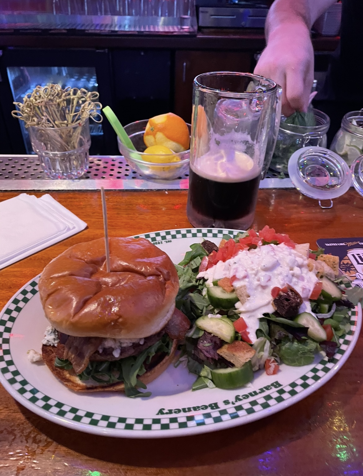 Read moreHands down our favorite place to eat in Westwood. We're here from out of town and we ate here on our first night in town and I had a foot long REAL Nathan's hot dog (I'm from NY originally and haven't seen a Nathan's in years so I was very excited to have that!) which was delish and it came with a nice side of fries. Hubby had the chili and liked it. The inside of the restaurant is VERY noisy and crowded because the world series games were on so we sat outside which was very nice, but the seating is very uncomfortable (very tall benches and seats). Waitresses are super nice and very accommodating and attentive. Last night was our last night here and we ate there again and sat outside. I had the baby back ribs which were meaty and delicious and came with cole slaw, and hubby had a Mexican platter with a few different things on it and he enjoyed it also. They have a very diverse menu, definitely something for everyone. Our waitress was super nice and I had mentioned that I'm having open heart surgery and it was my last meal before I have to start a crash diet prior to the surgery and she gave us pumpkin pie on the house, which was really sweet of her. We love Barney's Beanery so much that we each bought a t-shirt to take home with us. If we're ever in town again we'll definitely be back. We'll miss...