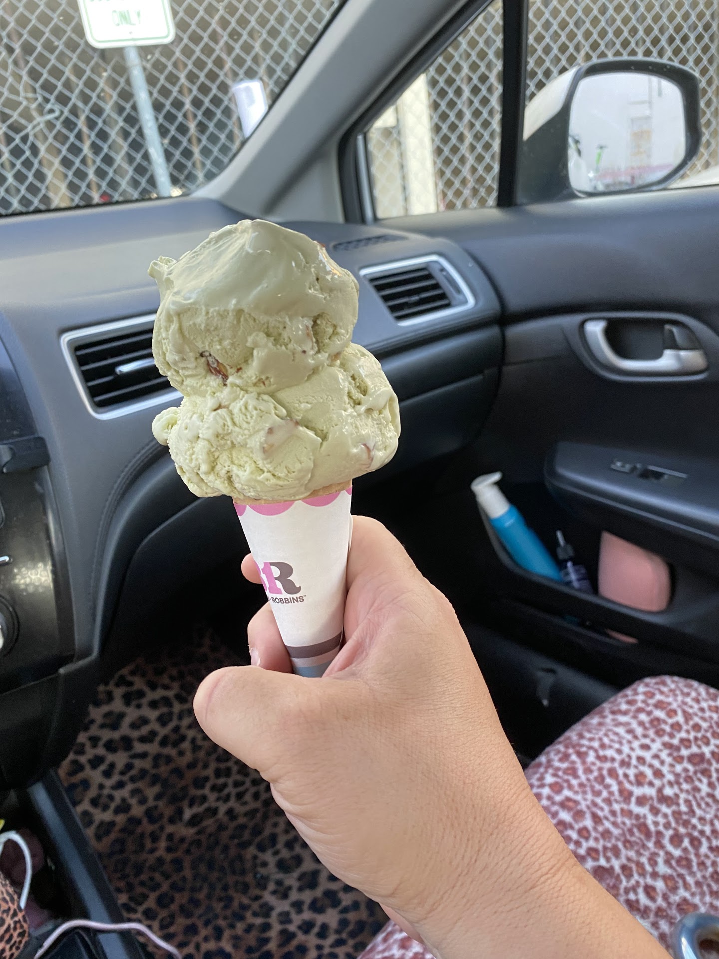 Read moreThe dinosaur of ice cream chains - from a time when it was ok to have hormones in the milk and it was cool to use green number 3 coloring to ensure fun! They’ve got 31 flavors but who’s counting? Nostalgia brings me here, when I need to remember what it was like to pay less for an ice cream cone. Today’s organic cones cost a ton! If you really think about it, Baskin Robbin’s isn’t cheap - think quality of the ingredients. I got a double pistachio on a sugar cone. The pistachio is pistachio because of the green color and the likely artificial flavoring. The nuts in this ice cream are actually almonds! lol! It was nice and cold and tasted green! Service was good this time but here I’ve had some pretty wacky moments that don’t make me recall Baskin-Robbins past. As I finished my cone I was pleasantly surprised to see that the paper cone holder didn’t stick to the cone itself! lol! How many times has that happened to you and made you think about say Japanese ice cream cones with paper cone holders that come off so easily? Not here in ‘murica where we spend so much on foreign policy that our infrastructure is crumbling, like the scary elevators we use that rock and jerk you to the bottom. Not in Japan. Have you ever ridden a Japanese elevator? Well it makes you wonder what our country would be like at home if we didn’t spend so much on the military. Oh, the parking lot here is not too big but usually you can...