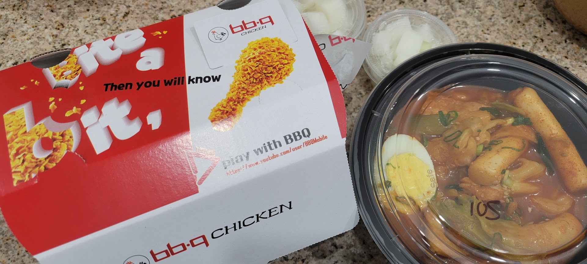 got myself some wings (Gangnam style sauce), 떡볶이, and a Strawberry Hibiscus tea.
