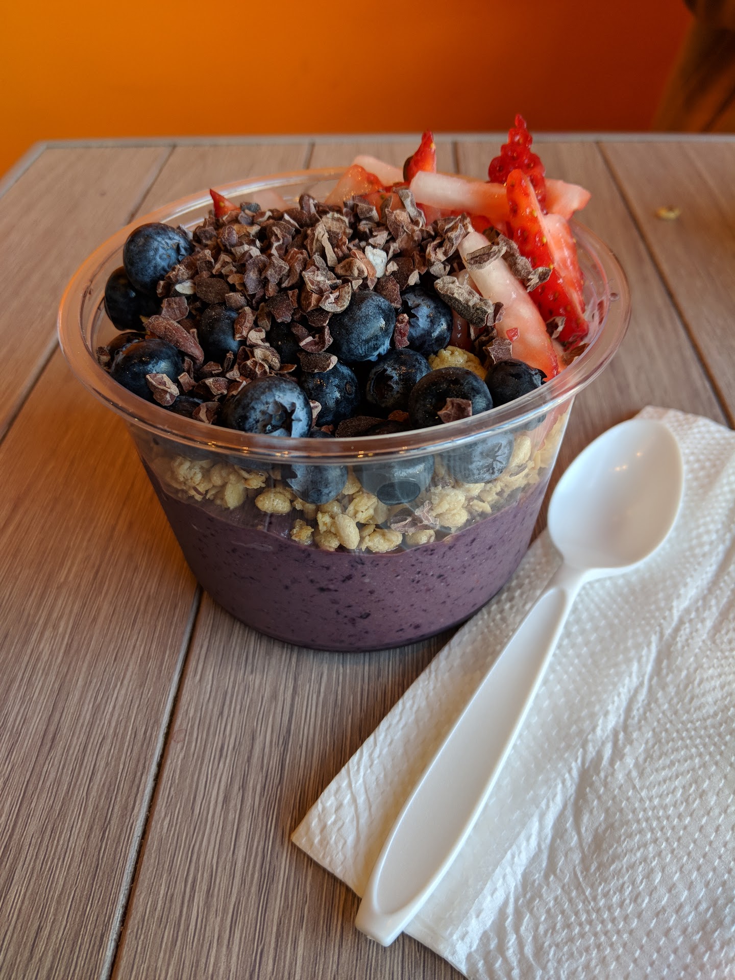 Read moreI’ve been going here for ages and it’s usually okay but I had a bad experience with a female server today- a larger lady with dark hair and glasses. I ordered and then got in line to be served. The guy in front of me walked away with the woman who had just been served. The server turned to me holding what looked like a small bowl of acai and asked “small bowl?” so I said yes, because that was what I’d paid for. After putting a couple of toppings on it she then realized it was actually a different base flavor and for the guy who’d walked away and then returned, but she accused me of “jumping the line” and made a big fuss like I’d committed some criminal act in an attempt to screw everyone over. The guy kinda jumped on board this blame train too. It was so weird. It was clearly a mistake (and not even on my part). The only one screwed over was me, who didn’t get the flavor I wanted and was treated like garbage. Guys, it’s like a $7 bowl of fruit. Relax.