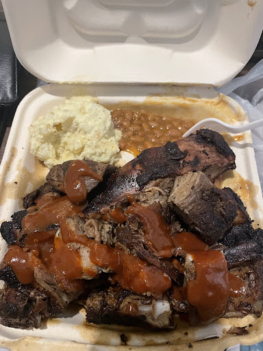 But them ribs tho!!!! The ribs are sooo good, you don't even need barbecue sauce. However, they have a sweet and spicy barbeque sauce that's delicious, if you do want it! The chicken sausage links are my favorite, but they sell out if those fast, so you should get there early if you want some! And, don't sleep on the sides...the potato salad, mac n cheese, and baked beans are absolutely bomb!!!