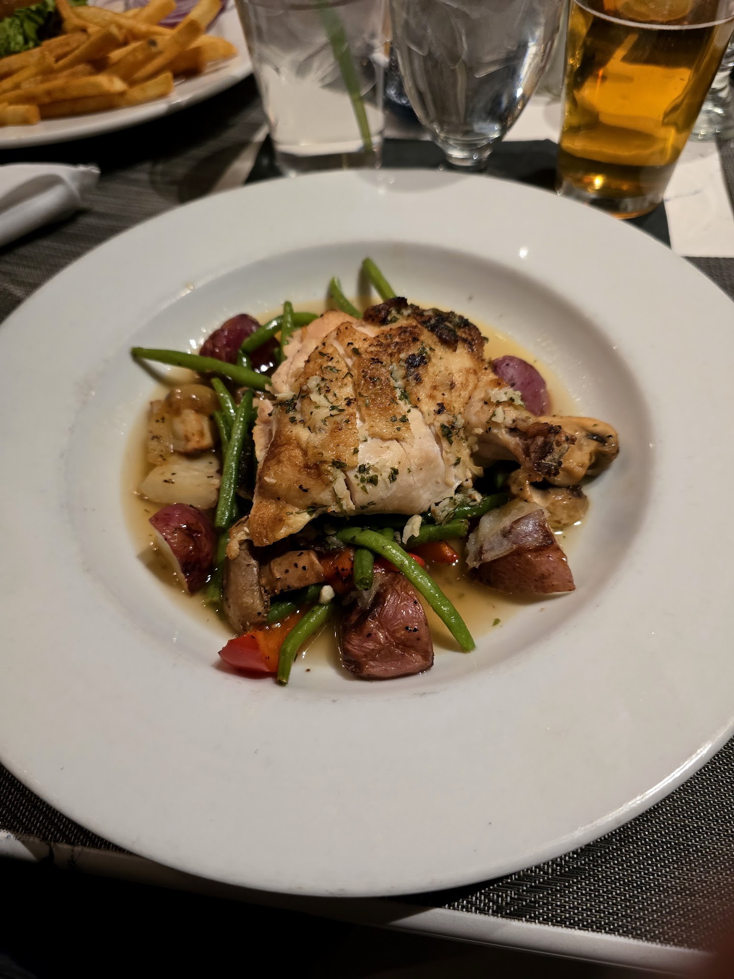 New visit Had a wonderful dinner at Blu. Our server Isabel was fantastic and such a kind and friendly person. Juan Carlos assisted and was also a very kind and professional individual. We started with drinks and wings. Next we ordered our entrees. My wife had the Sesame ginger salad with grilled chicken and I had the turkey club sandwich. We had good conversation with Isabel who was so nice and genuine. The ambiance was positive and comfortable. Highly recommended