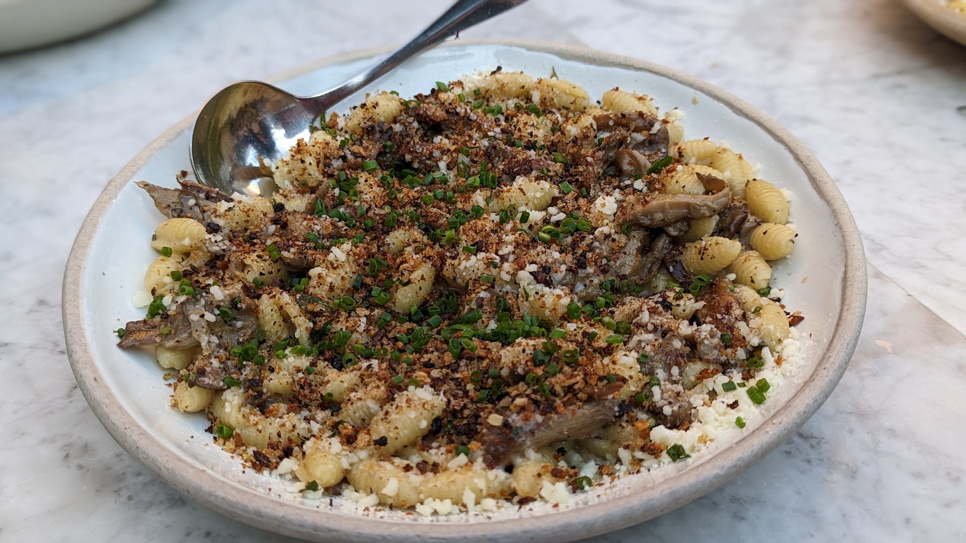 This place is a hidden gem. If you’re looking for a typical American style overly salted pasta, Olive Garden is what you’re looking for. This place is about authentic Italian flavors and is the first pasta I’ve had here in LA that reminds me of pastas I had in Italy. Had the Calamari for an app, the gnochetti with mushrooms and breadcrumbs, the cavatelli with truffle oil and the tiramisu for $85 (water only for beverage). The cavatelli was exceptional; a dish with pecorino and truffle oil that was completely non reliant on salt, but rather a creamy truffle oil flavor. (When a dish doesn’t bank on salt for flavor, it allowed the oil and pasta itself to shine). Actually, a bite of half cavatelli and half the gnochetti was the perfect bite lol.