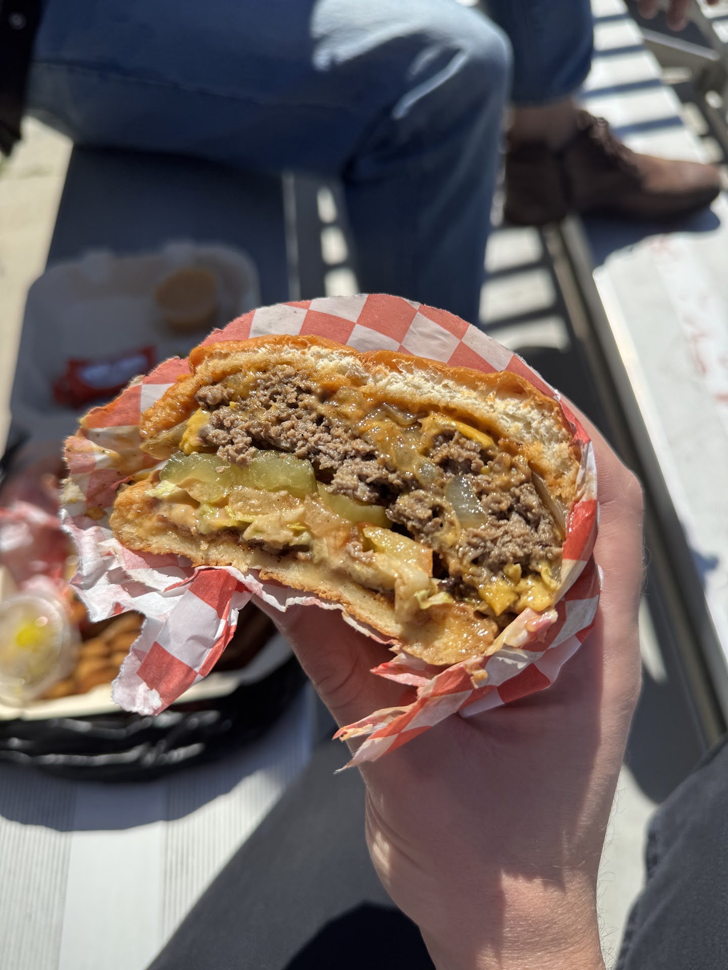 Read moreThis burger spot is in a small market by my house. Definitely a one of a kind type of place. I love "off the beaten path" places. I got Original Burger and the Crispy Chicken Sandwich. The burger was great. I eat burgers 4 times a week. I know this space. This one hit all the right notes. A standard burger with fresh toppings and well seasoned beef patties. Yes, please. The chicken was moist and well seasoned. The slaw went perfectly. And the pickles were great. They were out of fries so, I didn't get to try the Loaded Fries. I'll try those next time I come back. And they were nice and friendly. 5 Stars...