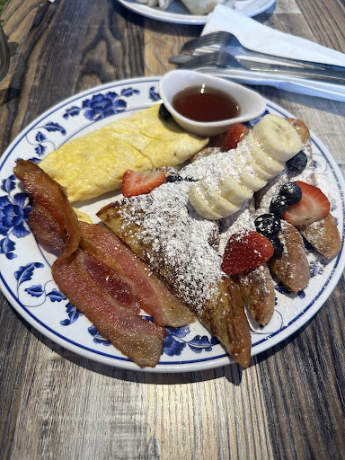Food - The prices were high for what you don't get. Ingredients were skimped on - there were precisely 5 blueberries in a large "blueberry" muffin, and the muffin, while fluffy, tasted like it was from a box mix. My cappuccino had a thin, bubbly layer of oat milk on top of it. I paid an extra $1.85 for avocado for my breakfast burrito, and I finally found 2 thin half slices in it when I was almost done eating. The potatoes which came on the side were a scant quarter cup and several chunks were undercooked. The burrito was small and its filling was grungy-looking, signs of the ingredients being cooked scrambled all together on a griddle not kept clean. I was hungry, so it was filling, but I now have indigestion, a headache, and am very parched.