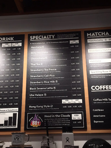 Read moreHere we go again! I was waiting for a bus, yes, the so useful #14, here, too. Long convolution; will synopsis it for you. I had an authorization to go to a Medical Facility for a podiatrist to help withy wretched ( I was doomed genetically & epigenetically from birth. Oy vey! Ai yi yi!) feet. I dreaded walking on Union. I hated Union (@ Wilshire Blvd) from years back. Ugly neighborhood. However, when I got off the #14 at Union & Beverly, I found a shabby, but pleasant residential street. Although it did tilt, the sidewalk, as I approached Temple, & had uplift from big trees, the houses had iron fences to hang onto as I descended to the corner. My podiatrist was an angel. Her nurse was totally welcoming. When I left, I nearly danced back up Union, my endorphins were so elevated. I had trouble locating the bus stop sign (hidden by tree leaves); I noticed the Boba Guys across the street. But I have never visited them. Boba is, I believe, a Korean concoction. It's a drink with tapioca spheres floating around...
