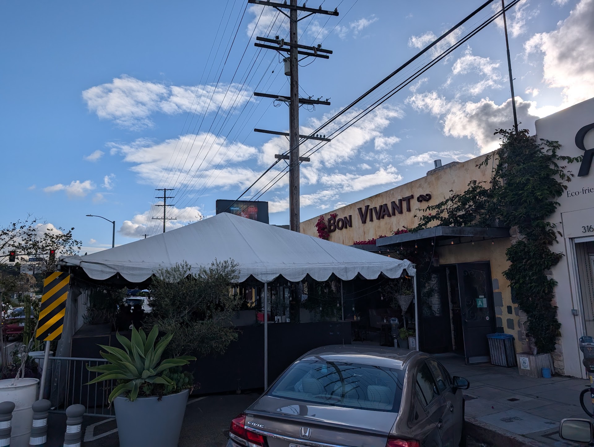 Read moreBon Vivant is a super cute bar, bakery & restaurant in Atwater Village. My friend and I really enjoyed coming here to enjoy a late lunch. I ordered a half portion of the smoked duck sandwich on whole multi-grain, and it was delicious! I'm really averse to ham and it originally looked and kind of smelled like it, but the texture was nice, and the taste of it was great, particularly with the apricot jam on the sandwich! My friend ordered a half of Jamaican Spiced BBQ Beef sandwich on cranberry walnut bread, and that was even better! Amazing flavor in the spread that they put on there. We both got a cup of their soup of the day (Curry Chicken)--wonderfully delightful! The soups came with warm baguette slices, and we loved it so much we were definitely getting the last drops with our baguette slices. Sweet potato fries here are also yummy!