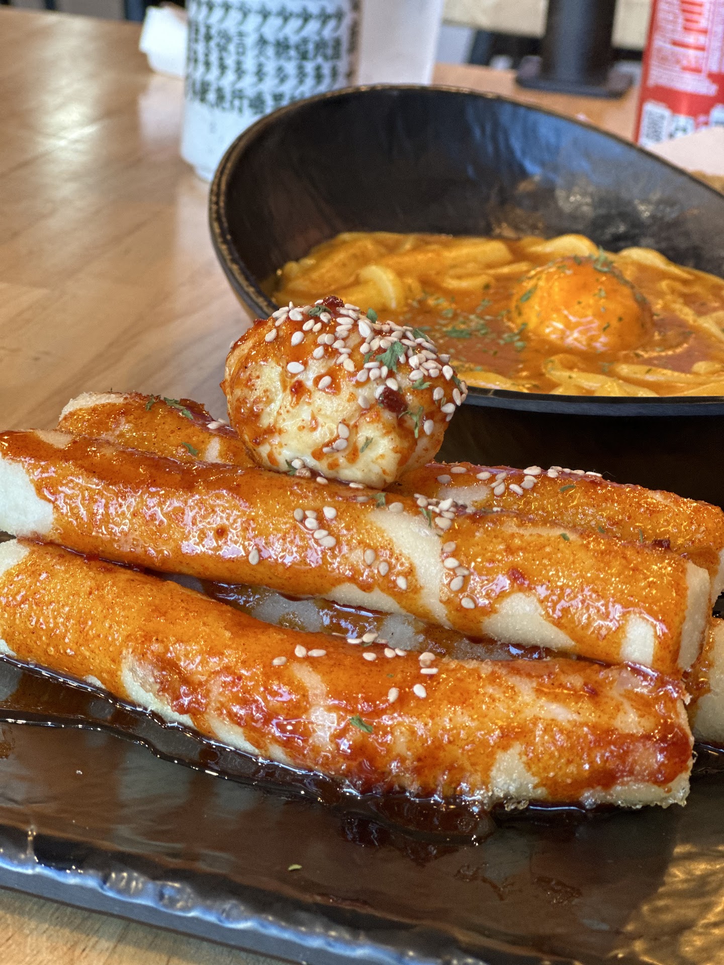 Bong Gu Rose Noodle (봉구로제우동) GaRae Tteok Bum Buck (가래떡 범벅) (봉구로제우동) Long Seaweed Roll (대왕 롱김말이) Long Calamari (롱오징어튀김)