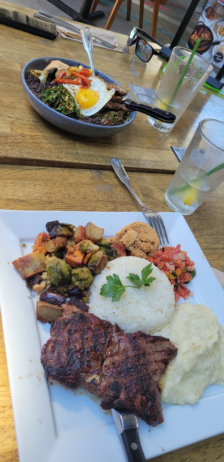 Food: Everything is Delicious and I'm not lying. My favorite go to is the Fresh Mozzarella Bruschetta to start with and then have the SALMÃO GRELHADO or the CHICKENS BOWL. The chicken bowl comes with Chimichurri and the salmon comes with this Homemade Passion Fruit Sauce and these two are to die for. I always pay extra to take a side of sauces home with me. Drinks are always ice cold and refreshing, yes I'm talking about adult beverages lol