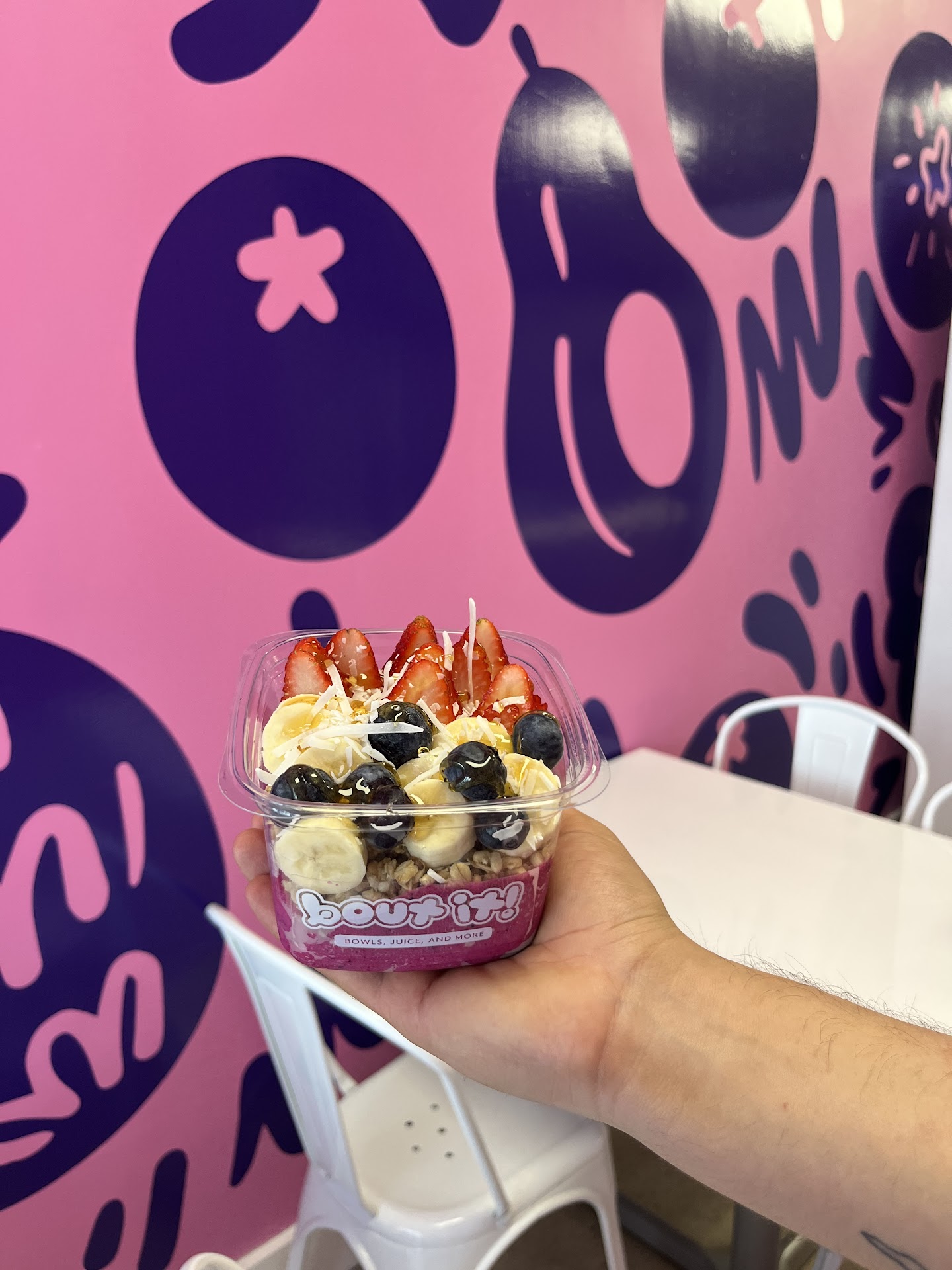 I decided this was the best acai bowl spot i ever been to before I even tried it. Chris is incredibly kind, helpful and informative! He didn't show any signs of being annoyed that I didn't have their menu memorized already or that I wanted to switch some ingredients up. He said our menu is just "suggestions, we make what YOU want " if only all Service industry ppl were like this. The price is great. Their larger bowl is the price of others' smaller bowls. Also, love the dimensions of the actual bowl. All the ingredients don't sit at the top and fall over as soon as u put ur spoon in it. Okay now the taste!!! Yall. Run, dont walk. Best taste, ratio of ingredients, quality of every ingredient ive EVER had in an acai bowl and I have 1 almost every day. I want this served on my wedding day and my birthday and Christmas and every other important day lol no really though. They should do events where they bring a bar with all their ingredients because his energy is also something I'd appreciate at these important, fun days 🤗 i almost went to another place omg I'm so glad I discovered BOUT IT 🤌🏼🤤⭐️⭐️⭐️⭐️⭐️🌟 google should let us use 1 extra golden sixth star 4 times a year, I'd use it for this...