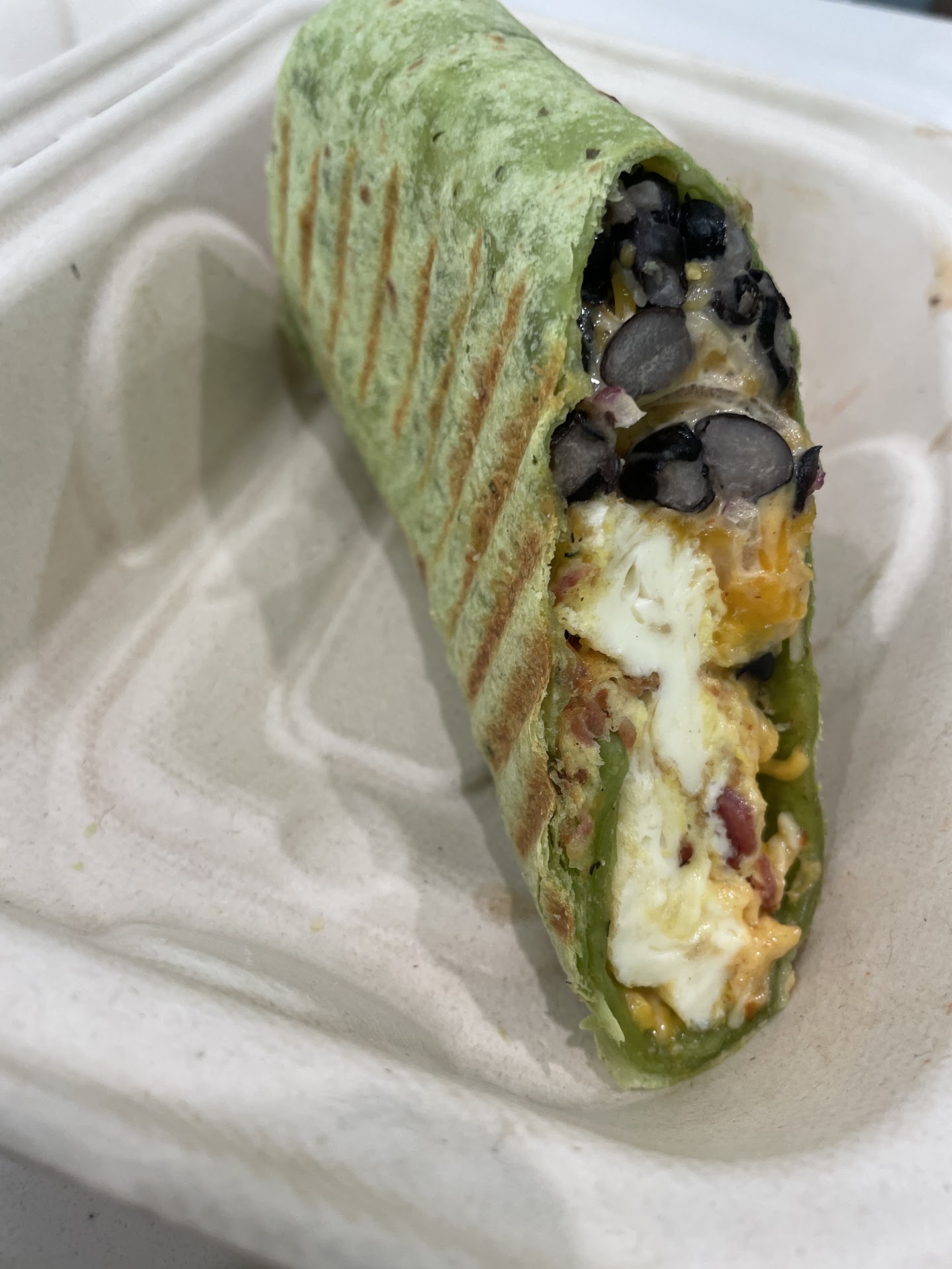 Read moreDecided to get breakfast here with my boyfriend. I got the Wrap with a kick and the Green It juice. The bf got the Acai bowl and the Original smoothy. I tried a sip of the smoothy it was sweet and good as you'd expect. My Green It was cold! thank goodness warm juice is not ideal. The juice was zingy and energizing. Also there was very little foam, as little foam as you can get. At first I was disappointed that my wrap had the sour cream inside despite saying its on the side on their website (update the website). It was still very good and I really didn't notice the taste of sour cream the flavors of eggs, bacon, and cheese were so well balanced. I thought of letting my bf try a bite but I selfishly ate it all myself it was so good. I just asked my bf about the acai bowl and he say's it's really good! Sweet...
