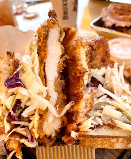 The Original Chicken Waffle | $10.95 — it's served with original seasoned premium chicken breast, chili honey and cider slaw. The waffle is fluffy and slightly sweet, the chicken breast is so juicy and not dry, every bite is full of 100% flavors and excitement. It can be a little messy eating but it’s licking-fingers deliciousness anyways