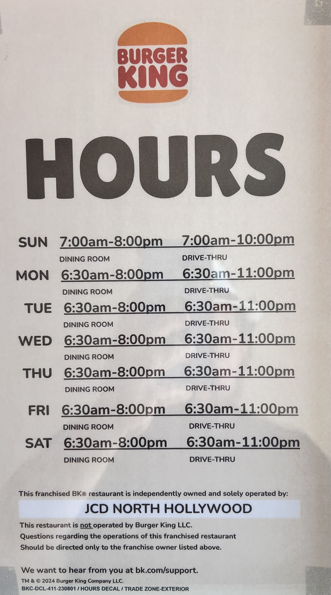 Overall, my experience at Burger King exceeded my expectations in every aspect. The combination of outstanding customer service and delicious, freshly cooked food makes it deserving of a five-star rating. I highly recommend this Burger King location to anyone in search of a consistently excellent fast-food experience. Kudos to the entire team for their...