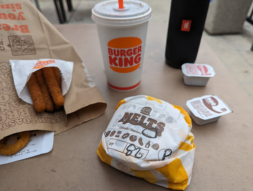 Read moreThey seem to be determined to go the way of the local McD's as far as hospitality. I walked in today and saw that apparently they've very recently covered up every single one of the few electric outlets they had inside this location. I used to come here and could sit & enjoy my meal for a bit & charge my phone or surf on my laptop. Now, no more; apparently they have no use for modern customers. (Just like the McDs, which not only has no outlets at all, but keep their AC temp at freezing; clearly in order to force all their customers to never stay a minute after buying.) I wouldn't be surprised in the least if this BK soon follows that as well and drops their room temp by 10-15 degrees to get rid of customers all the faster. Once I saw what they'd done, I walked right back out today without buying a thing. I'm certainly not coming back; clearly they don't want the business of anyone like me. I can buy my food at another establishment - one that still likes customers' money enough to show a little hospitality. And I'll be sure to pick somewhere where the food isn't laughably overpriced and undersized,...