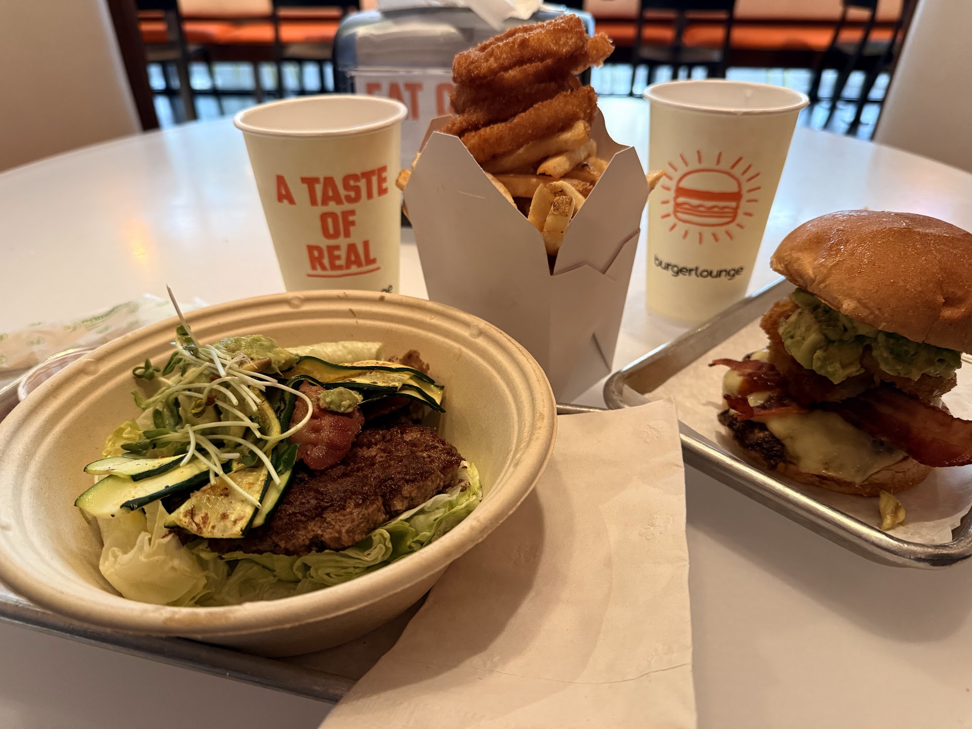 Burger Lounge is a small chain, somewhat new in Los Angeles. This one is located in Marina Del Rey. Parking is free in the underground lot or on the street. It is on a corner of a block long strip mall and is cute.