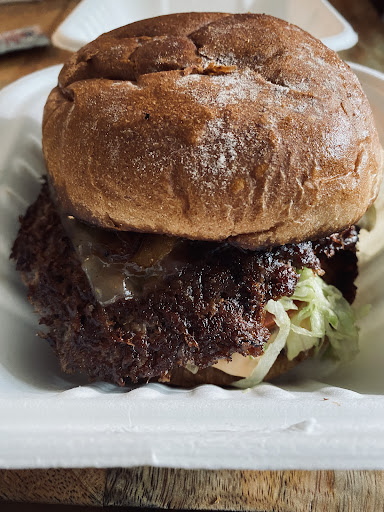 So, the grass-fed omega-3 burger is quite good, the meat generous in size, the sandwich overall good value, the fries excellent!