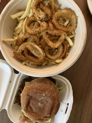 Burger- 3/5 - badly grilled onion that made the burger acidic, slightly soggy but has overall good flavor. Fries/onion ring - 4/5 - good flavor but very soggy Sauce - had ketchup, ranch, and bbq. The bbq had a twist, slightly spicy, and I wansnt a huge fan. I had to pay for extra sauce and when picking up, it wasn’t included so I had to ask for it again when I already paid for it Service - 3/5 - waited a few minutes when I was the only person there and there were 4 people behind the counter. 2 employees were constantly talking, 1 packaging, and another behind the cashier. Seems like they don’t really care for quality service Wait time- 3/5 - since I wasted 10 minutes past my pick up time and I was not helped right away nor told how it was going to take. Price - 3/5 - $14 for a burger is a lot (I paid more since I added avocado) and you have to pay extra for sides. Sides are cheap because a whole bowl of fries and onion is like $6 m; shake...