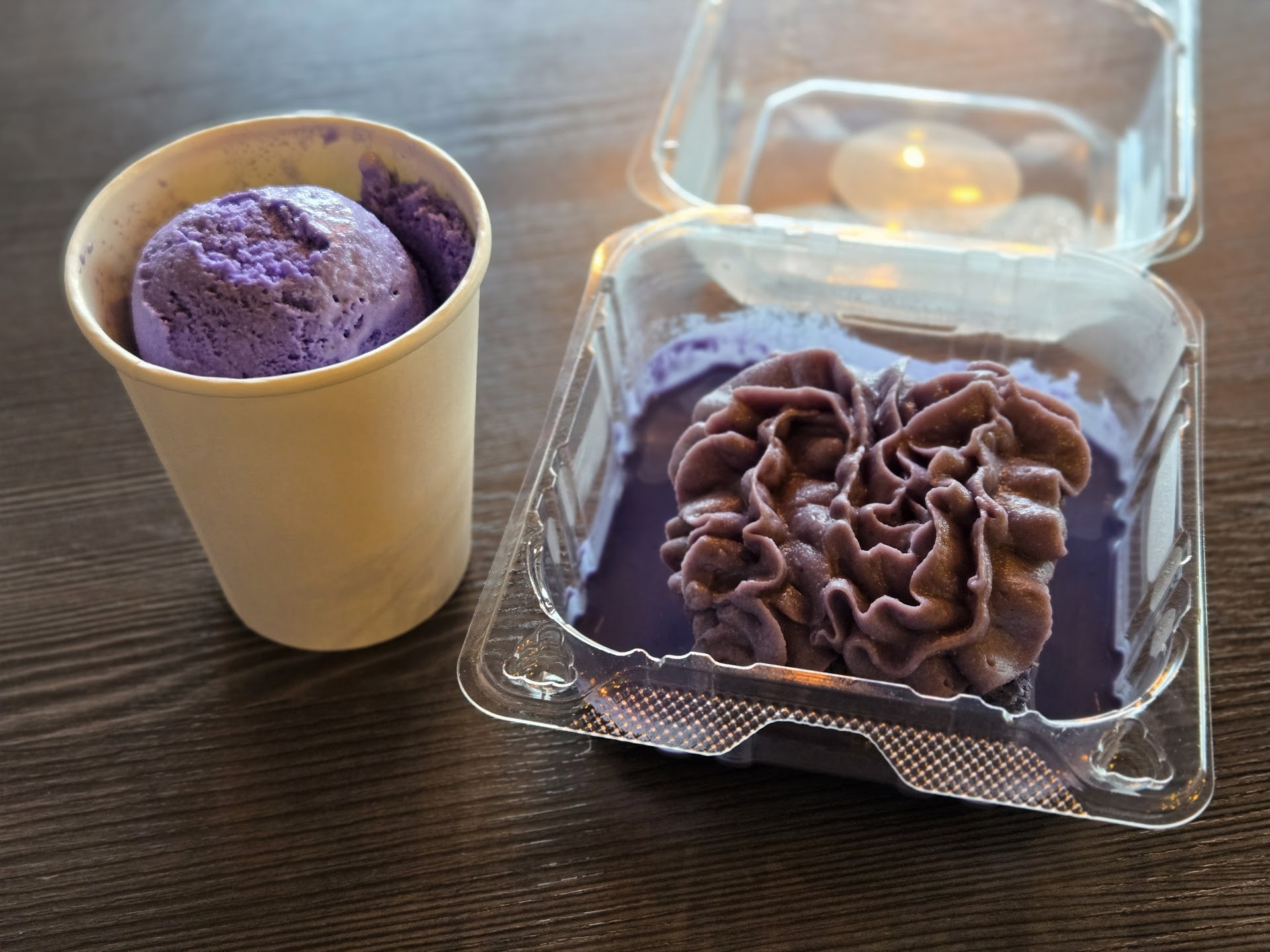 Food & Drink Order: Ube Monster Truffle (ube cake, coconut cream cheese frosting, white chocolate, oreos) Churrochi (grilled mochi dough, cinnamon sugar, caramel drizzle) Signature Halo Halo (coconut jellies, jack fruit, boba, frosted flakes, ube ice cream, flan, pandan & strawberry flavored jellies) Hibiscus Calamansi Cooler