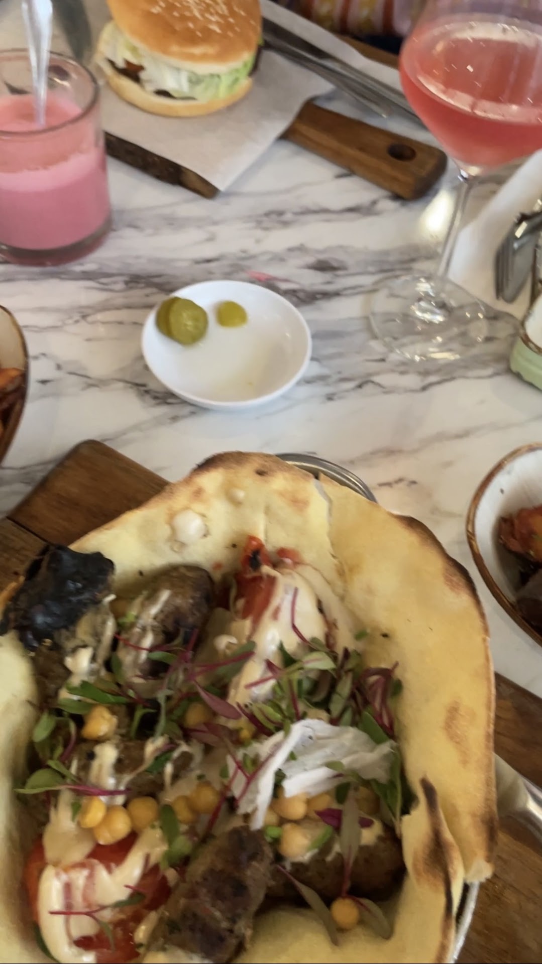 One of my friends ordered the Lovely Latte from the limited time Barbie menu and the Landwer Burger, both which were absolutely flavorless and bland. Then two of my other friends ordered the Glitz & Glitter drinks, also from the limited time menu, which were forgotten about and we needed to flag someone. It a mission to get anyone to notice us, and after talking to a staff member, 30 mins later they get brought over. We eventually start getting our food delivered to our table and I notice that my Sinia Kabob had a PIECE OF NAPKIN on top as a lovely garnish. How does that get missed by the kitchen and presented to a customer to eat? Where has that napkin been and what germs have now contaminated my food? Obviously I want to bring this to the attention of the staff so my plate can be sent back to the kitchen and be remade. We waited patiently for our server to swing by. It took 30-40 mins for us to realize that no one was going to come by and check in on us. Dylan did not came back and I needed to physically get out of my seat to speak to the hostess up front to flag the issue for her. She then turns around and her eyes are scanning the inside of the restaurant for Dylan. He is nowhere to be seen and she said that she would let him know as soon as he comes by. After another 20 mins a completely different employee comes by who apologizes, takes my plate to the back, and says they'll remake it ASAP. We were lied to. I NEVER got my remade meal properly plated and served to me at our table. Eventually I asked to order something else because of the massive delays and asked if the pasta dish my friend ordered would be faster. We had yet another different server who said it would be compared to my Sinai Kebab and that it would be ready in "10 minutes." More lies. We waited over an hour total with them constantly telling us that they were "working on it" and that it would be "ready soon." The restaurant manager, Amir, eventually comes over to our table to try and deescalate the situation, but nothing could make up for the dreadful experience we all had here. I never got my pasta, which I last requested, and instead got the Sinai Kebab. My remade order ended up being packed up in a to-go container because we were itching to leave. By the time we left it was 8 pm. We spent almost 3 hours here, not because we were having fun, but because of the lack of attention and service this place has for their customers. And we were not alone, we saw and overheard countless of complaints from other parties dining there as well. And the Sinai Kebab was also flavorless and bland! The best thing about it was the chopped salad that came as the side! They comped my Sinai Kebab from our bill but I just wish we could get our TIME back that we wasted...
