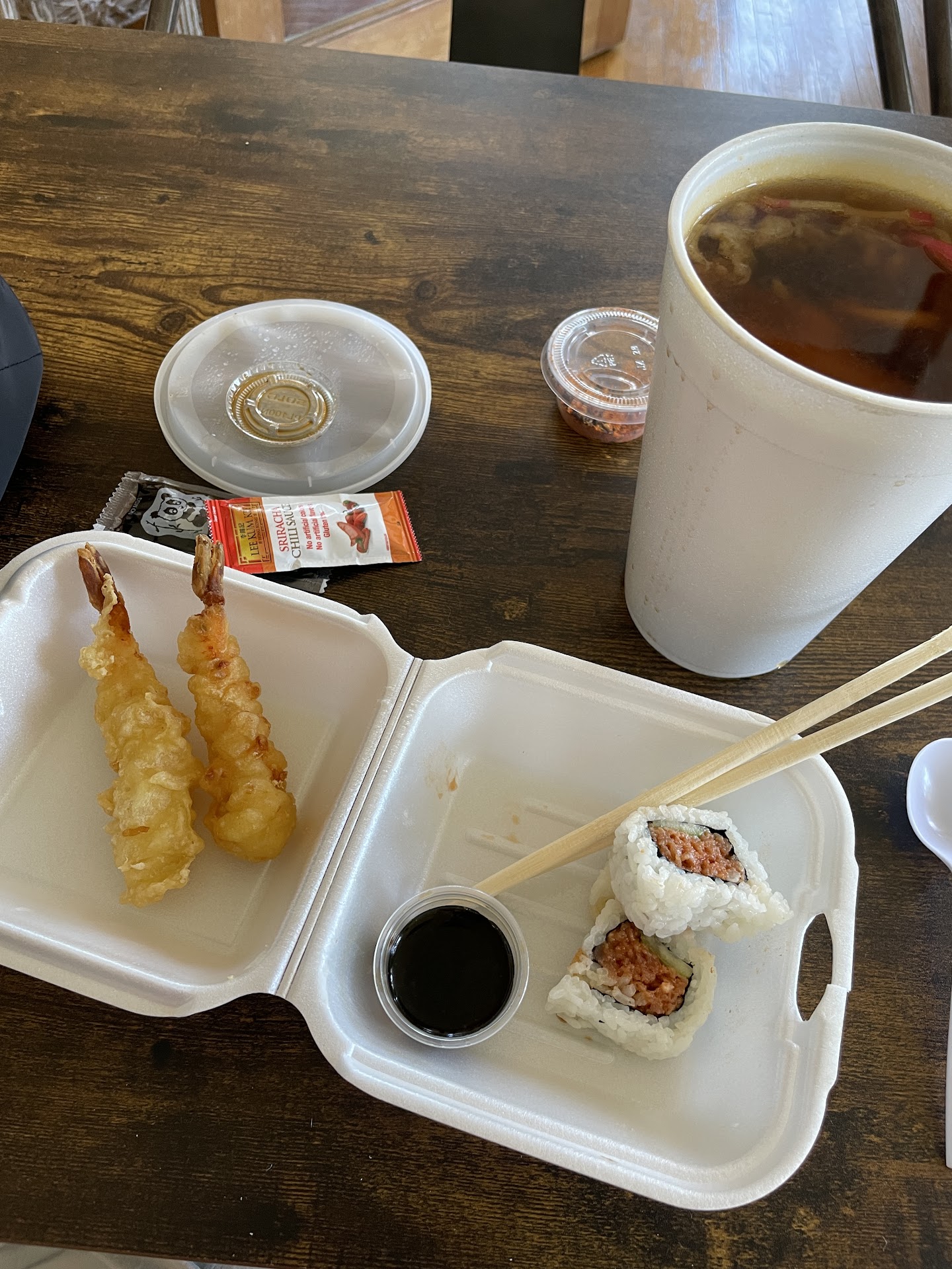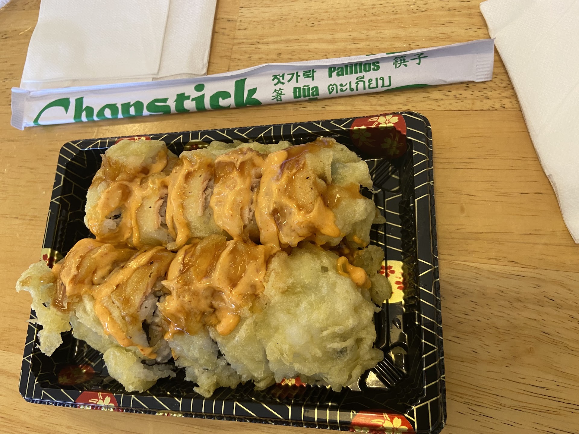 Read moreThis is why you shouldnât trust Google reviews. Seeing it at over 4 stars and 260+ reviews is concerning to say the least. I wanted cheap tempura so I went here. Got the spicy ramen bc it was $7 and Iâd figured Iâd try it. The tempura was that basic fast food style I wanted, a little doughy and a few confusing veggie choices. The ramen was worse than Top Ramen in quality and flavor, took one bite of the mushy noodles and knew I wouldnât be wasting the calories on it. Def wonât be back, and I donât know why you would trust the fish in that run down hole. But if youâre craving a greasy shrimp tempura roll I can see this being a good...