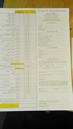 Read moreI LOVE California Chicken Cafe. They are SUPREME when it comes to Rotisserie chicken. It is succulent, moist, tasty inside.. crispy skin outside and seasoned perfectly! I can not decide which side dish I prefer. I usually order a whole chix with 2 sides & order additional sides. The rice pilaf is light, airy & flavored with peas & carrots. The broccoli/ macaroni is awesome, lots of garlic, rich and tangy. Then seasoned sauteed potatoes perfectly soft inside, crisp outside. My additional go to, is the squash...an exquisite, healthy option. After indulging in ALL this wholesome, heart healthy cuisine I am hard pressed to exit without the "ALOHA" cookies, made with real butter, macadamia nuts and all kinds of goodness! Needless to say I frequent this eatery often. My only trepidation and reason for less than a 5-Star rating is the " to go" service. This evening for the third time, my "take out" order was incomplete! That really is the worse feeling! Management is apologetic & made attempts to compensate ...but 3 times?? I usually quickly scan , but honestly did not expect reoccurences. Staff needs to pay ATTENTION per preparation...