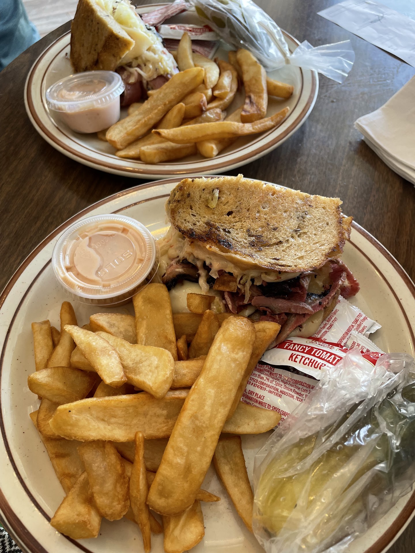 We started with blintzes, stuffed kishka, and a crisp Cobb salad, all delicious and generously portioned. We also ordered stuffed cabbage with baked beans and kasha varnishka. To go, we ordered sliced tongue and pastrami, plus rugelach to goâperfect for indulging later.