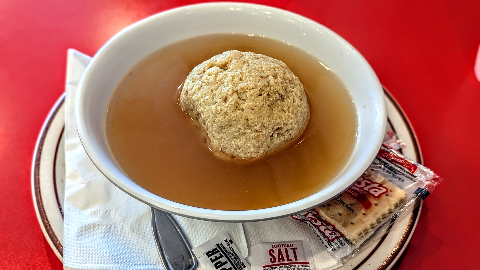 Read moreHonestly I was disappointed in this restaurant, especially after hearing such good things about it. The menu was vast, parking was ample and the service was great, but the food itself lacked taste. The matzoh ball soup was fine, but the broth didn't blow my mind. Reminds me of a basic chicken stock you get from the store. The Marilyn sandwich was very plain, not seasoning or sauce to enhance the cheese and tomato. The side salad was actually the best part because the dressing had flavor and wasn't too oily. Overall, I'd suggest ordering something else than what I listed. Can't say from experience, but I bet the potato pancakes and pastrami Reuben are better since they're more popular menu items. Either way, they need to add more flavor to their dishes. Jazz it up!