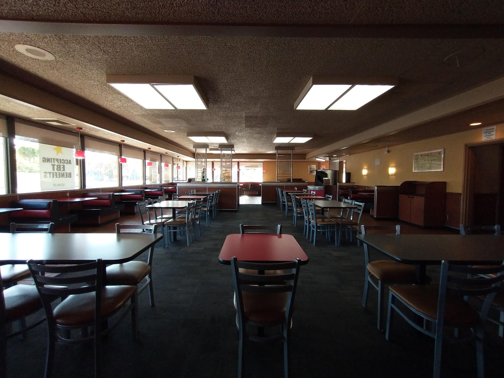 Read moreI've been eating carls jr since I was a child and let me tell you I've been to many locations over 100 in Los Angeles easily. This location is by far the worst absolutely unacceptable disgusting location I've been too. First off I go in to get my food to be slowly attended to after ordering i go and wait for my food in the dining area there's this old ripped carpet on the floor cigarette stains burns on the tables and booths.everything is old and run down and smells worst than most bars with a smell of bleach and fabuloso to blast the dingy smell of the old un vacuumed carpet that should have been replaced with adequate flooring I'd say 30 years ago. So now I'm nauseous just from the scent and honestly lost appetite. While my order took almost 15 minutes to come out. I get my food and jam because there's no way I feel okay eating there inhaling that stench. Food was ordered with the extra guacamole which I payed for and it was not at all guacamole it tasted like a watered down mix up of old avocado that was clear green liquid with onions and a hint of fabuloso mixed in there. I'm never putting out bad reviews because most places are up to standards but this spot go inside have a feel of the atmosphere you...