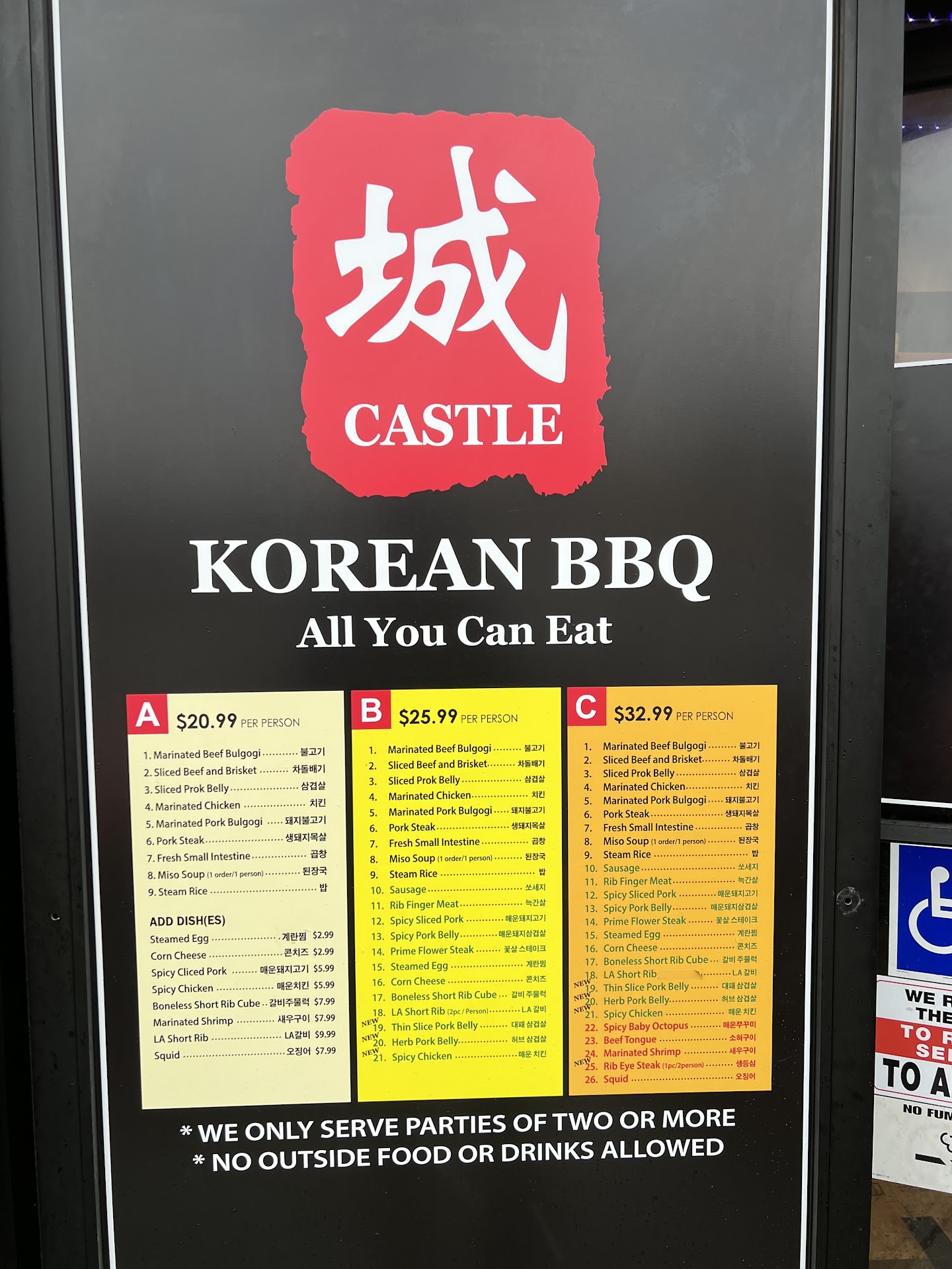 Bottom line: For $9.99 AYCE kbbq, it's pretty hard to top Castle. Also, parking can be a hassle since the parking lot is small and there only seems to be valet available. I parked about two streets away and found plenty of...