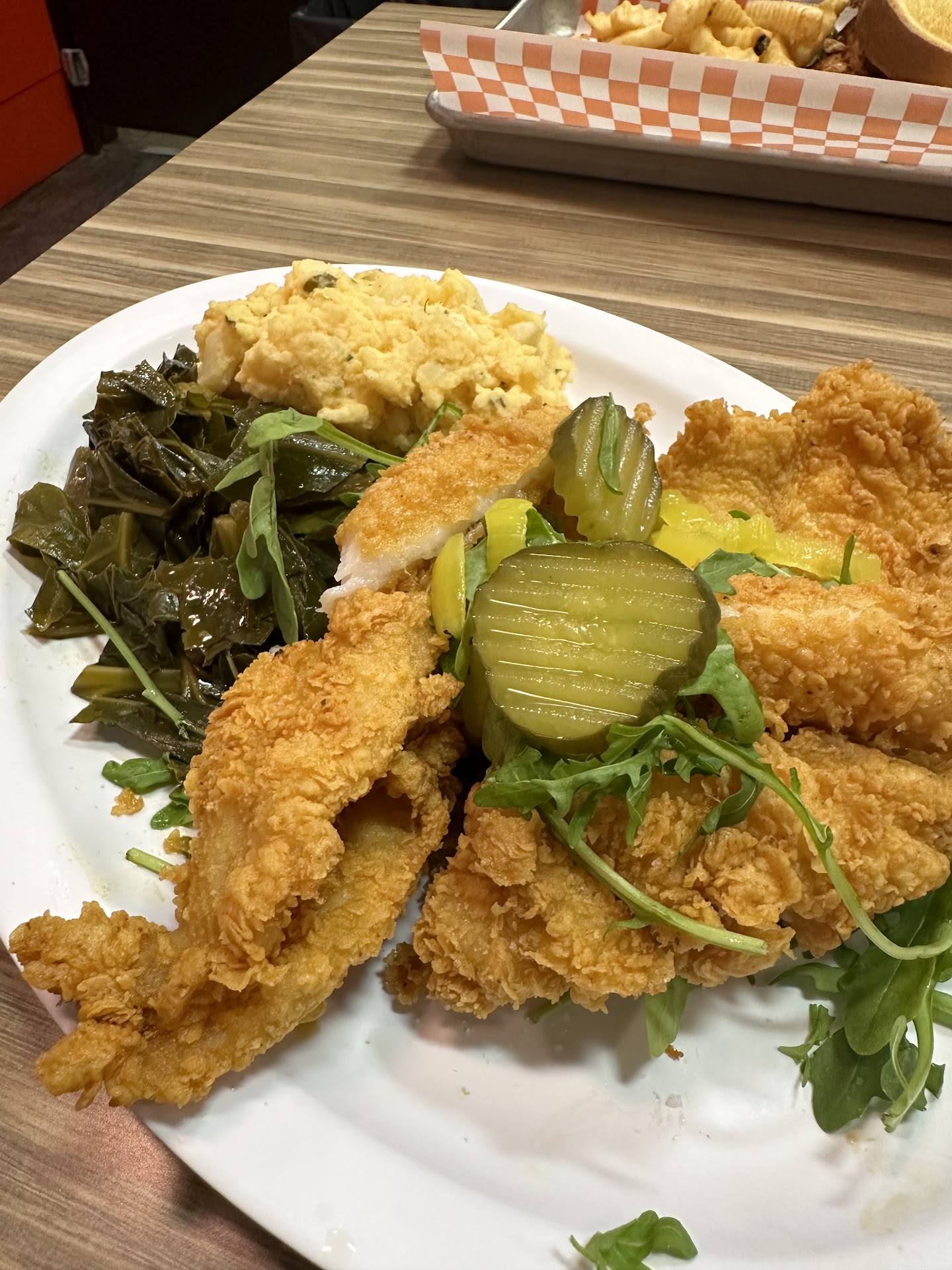 Next up, the Fried Catfish with Collard Greens and Mac & Cheeseâa classic combination that feels like a warm hug from your Southern grandma. The catfish was crispy on the outside, perfectly seasoned with a crunch that gave way to tender, flaky fish. Paired with collard greens cooked just rightâsmoky with a hint of vinegarâand mac & cheese that was decadently creamy, each bite was a journey through layers of flavor and texture.