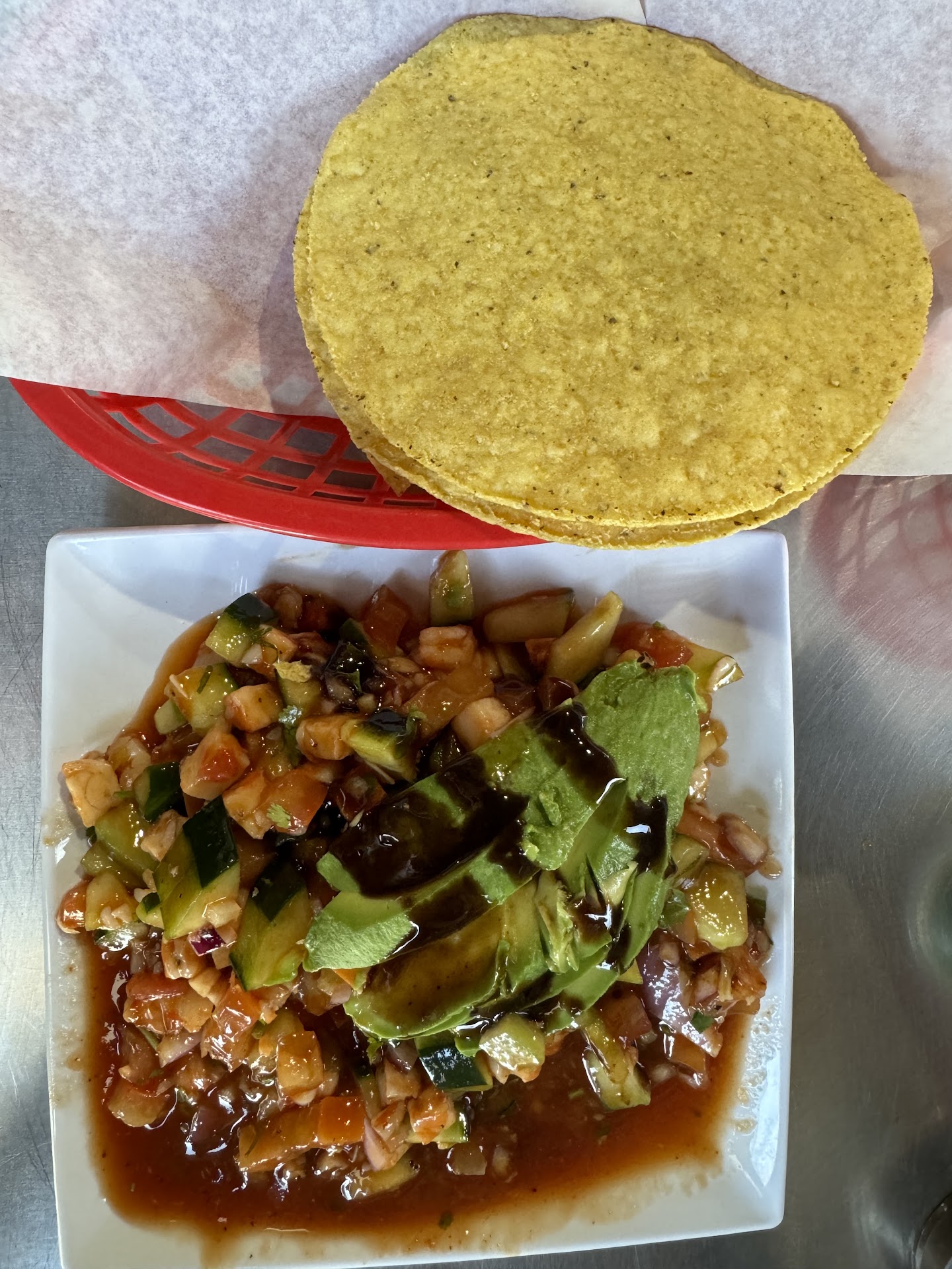 What can I say this is a really well decorated and clean establishment. The people whom work there are very friendly and happy to serve you. I ordered 2 fish tacos 2 shrimp tacos and 1 shrimp cocktail. If you love hand made tortillas with your tacos this is a great place to eat. Served with pico de Gallo chipotle cream sauce and cabbage. Chips with beans and cheese was a quality touch and don't forget their green chile with lime sauce added the spicy touch it was missing if you like your food with a zing. The shrimp cocktail was ok the shrimp were a little over cooked and had a fishy flavor. The tomato in it tasted like sauce from a can. The toppings were on point and will give it another try. As for now the fish and shrimp tacos were amazingly delicious 😋. Recommend this place if you're out here in the valley.4 dollars a taco and the cocktail was only 15 dollars . The 3 stars for food was because of the cocktail when I go back and its a better experience with the shrimp cocktail I will upgrade the...