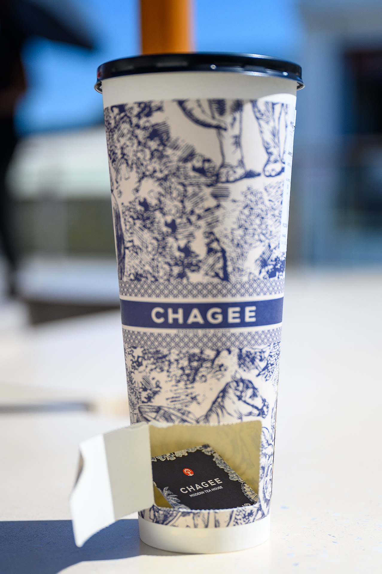 Also for the opening weekend, the drinks were being served in a unique, oversized cup that has a tear-open compartment on the bottom to reveal a hidden prize. Prizes varied from $1 off or BOGO coupons, CHAGEE branded pins, magnets, or pop sockets, or vouchers to exchange for other prizes such as a really well-made and designed tumbler mug, or the grand prizes. For a store grand opening event, CHAGEE's is probably the most grand one I've gotten to experience. It felt very community and customer focused, so kudos to them and congratulations for opening the first USA location!