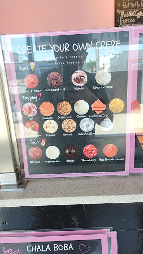 Read moreThis is our second time back to this recently opened Boba and creperie place. They have crispy Thai crepes, unique and delicious. A must try if you never had them before. We've had the Thai sweet chili with dried shredded pork, a Thai specialty, Pizza ham and cheese crepe, and strawberry banana crepe, all generously sized and delicious. The lemongrass tea is super refreshing and great tasting, great coconut smoothie and butterfly pea flower purple tea too, just a few of the many options. Drink vary from 20oz to 30oz. Unique tasting and delicious Thai iced coffee.