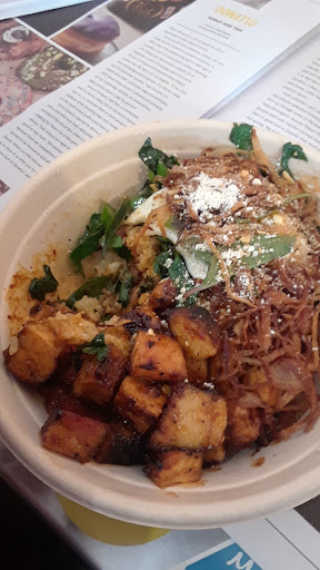 King Pau Noodle bowl is great for vegetarians. Clean crisp profile, though not as filling. Kimchi spam bowl is amazing and that sesame oil is the kiss on the lips (ask for extra), frankly they should use this in the salad, tough I prefer my eggs over easy. Chubby bork pelly as I like to call it is rich, but the cotija doesn't mix with the sweetness of the pork and the peanuts are a bit of a surprise, not necessarily adding to the dish. Beefy T is bomb, a perfect blend of Japanese shoyu and traditional prime rib witht eh Tiny's prime rib plate giving it a good run for their money. They are kind of filling i guess if you get the ooey gooey fries, but stand alone each bowl to me could be bigger, at least along the lines of a bibimbap.